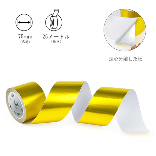BOMEI PACK 金アルミ ホイル テープ 頑丈、パイプ、金属修理、HVAC、絶縁材のための熱く冷たい空気管テープ を密封しましたり及び付ける HVAC (50mm*25m)