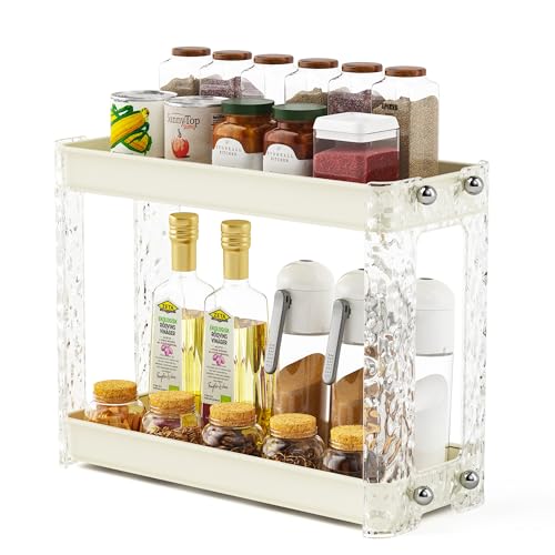 SmartMaster 収納 スライド 2段 高さ20 CM 引き出し式 隙間収納 調味料収納 収納ラック 2段 スリム スライド テーブル調味料収納棚 回転可能 便利で取りやすい 組み立てが簡単 キッチン調味料化粧品オフィス用 ホワイト