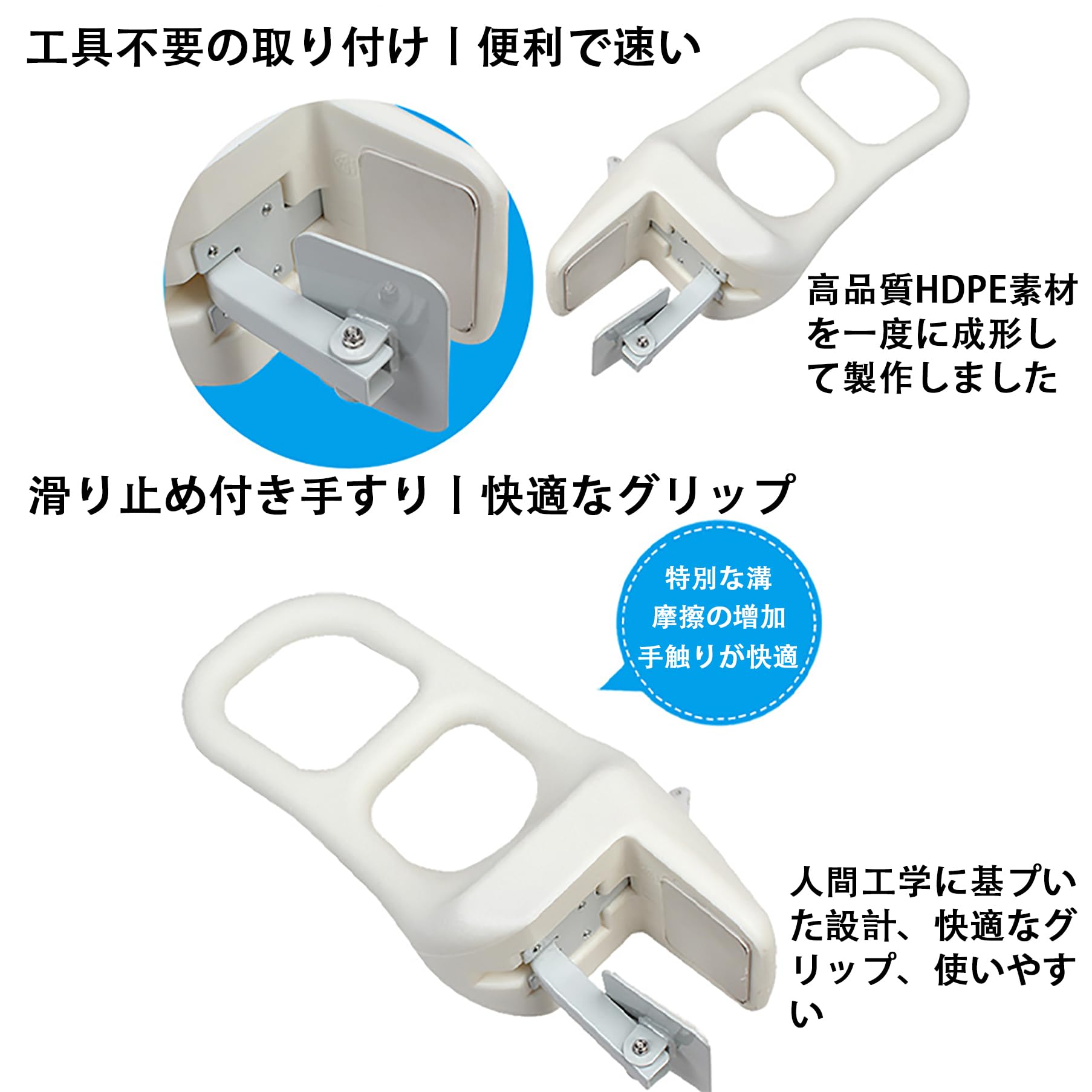 吸盤 ドアハンドル 手すり 吸盤 取っ手 介護 手すり 強力吸盤 トイレ用手すり 介護用品 取っ手 真空吸着式 ツルツル壁用 滑り止め 転倒防止 安全性 穴あけ不要 補助ハンドル 工事不要 取り外し簡単 再利用可能 介護 高齢者 子供 入浴介助 風呂 浴槽 浴室 階段 耐荷重7.5 kg ホワイト
