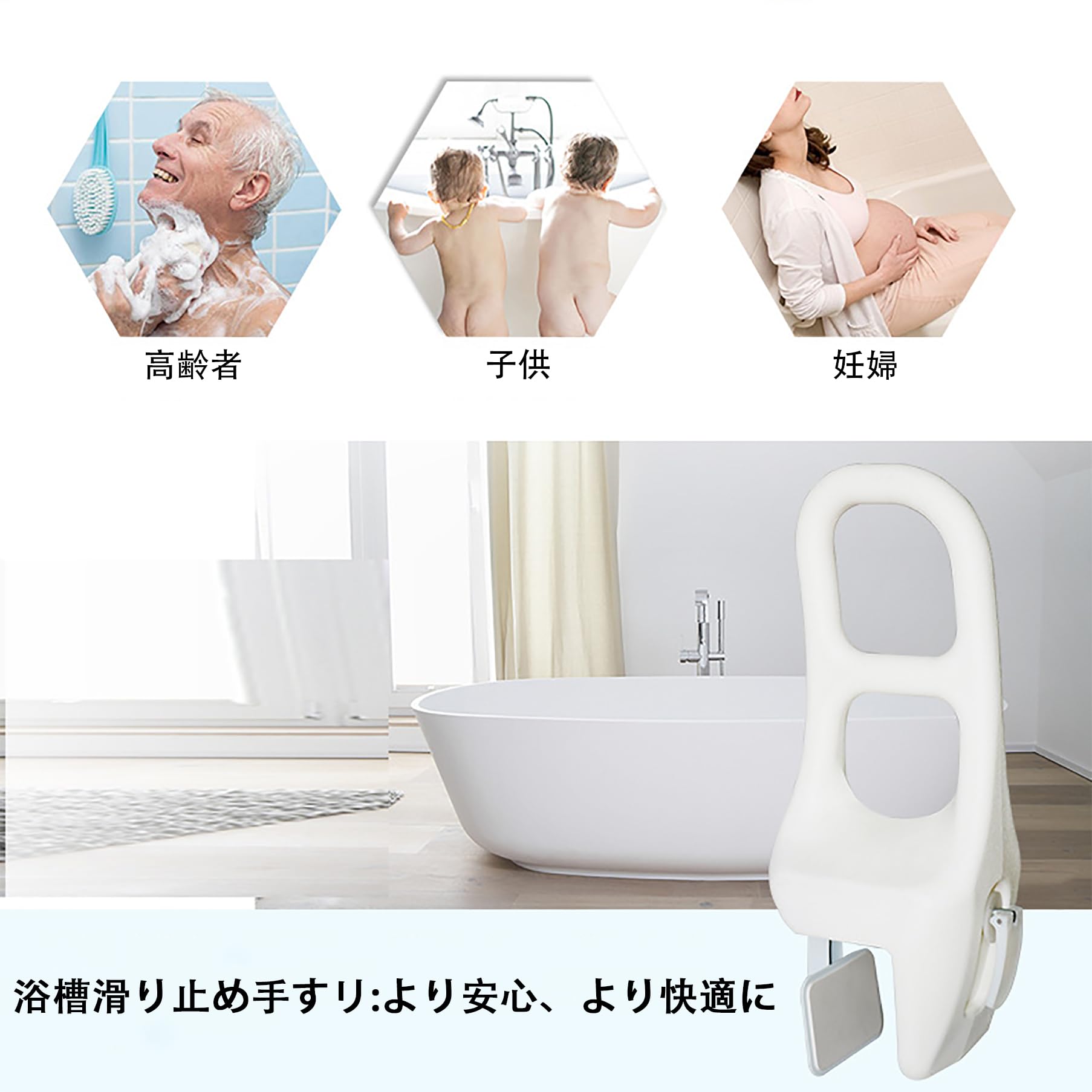 浴槽手すり 強力吸盤 浴室 トイレ用手すり 風呂 介護用 立ち上がり補助 入浴介助 取付簡単 転倒予防 長さ47cm ホワイト 安全耐荷重85kg CE認証 SGS認証