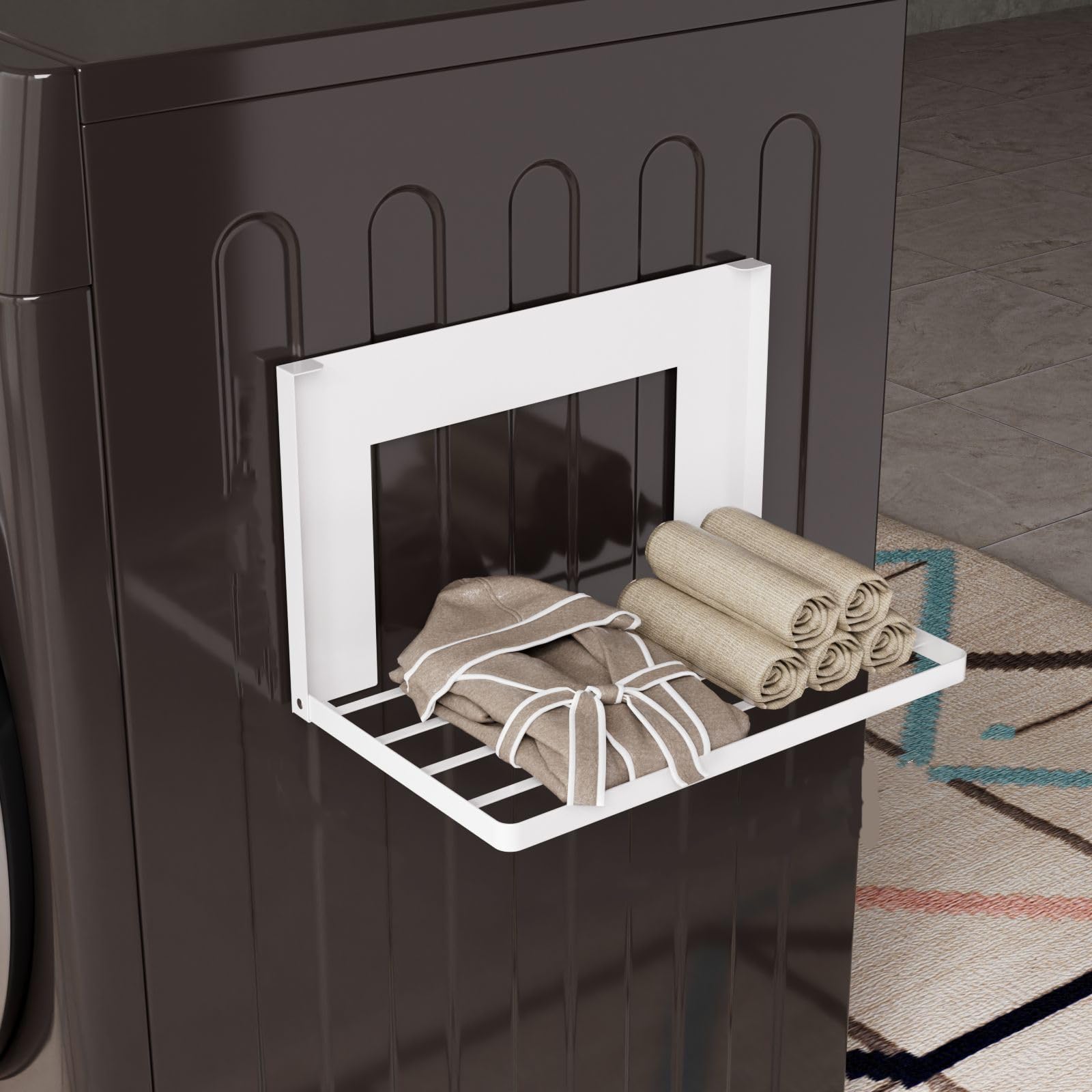 Y-Step 洗濯機横 強力マグネット折り畳み棚 耐荷重5kg 収納ラック 省スペース タオルラック お風呂|浴室|洗面所対応 ランドリー収納 壁掛け棚 ホワイト(洗濯機用 折りたたみ式 一時置き場)