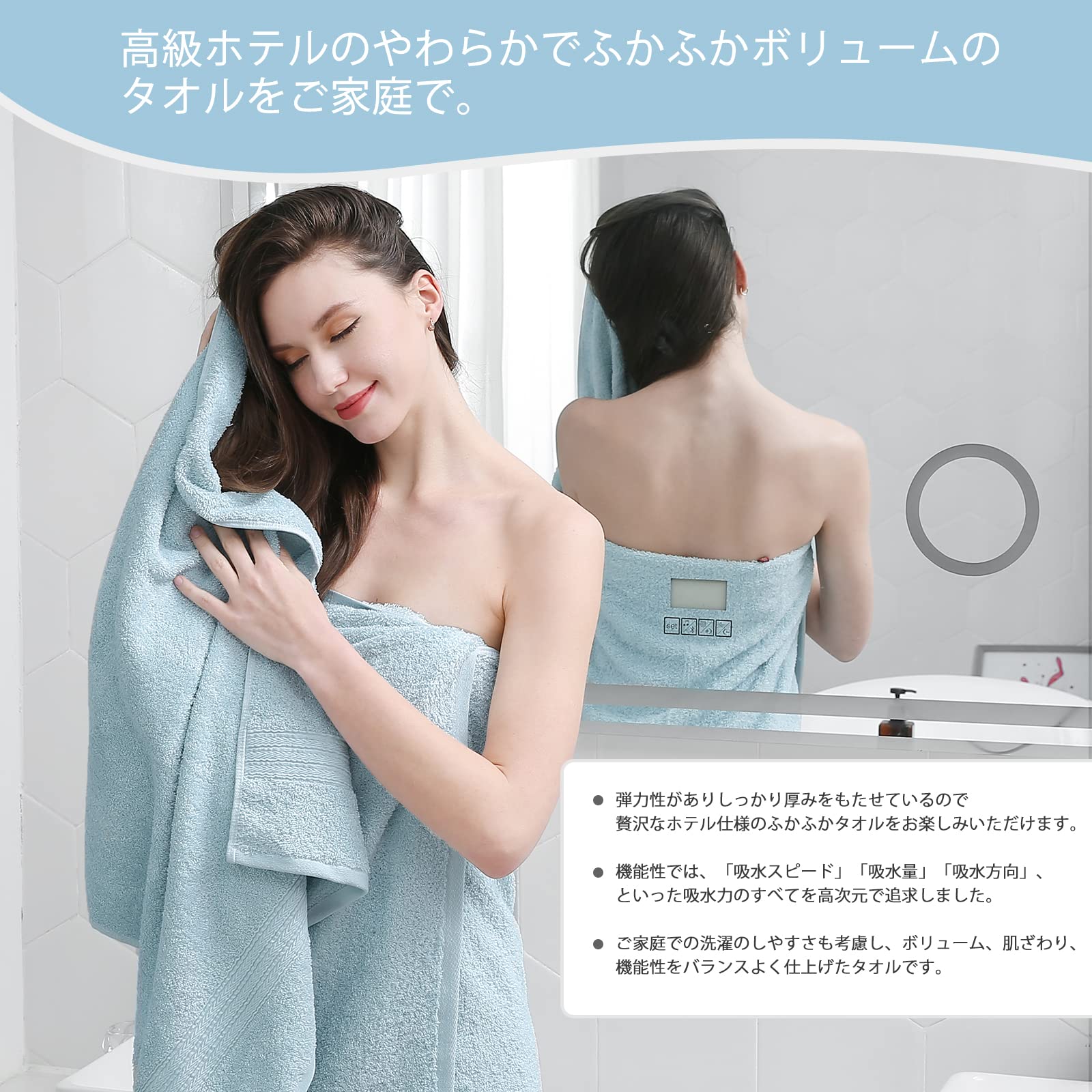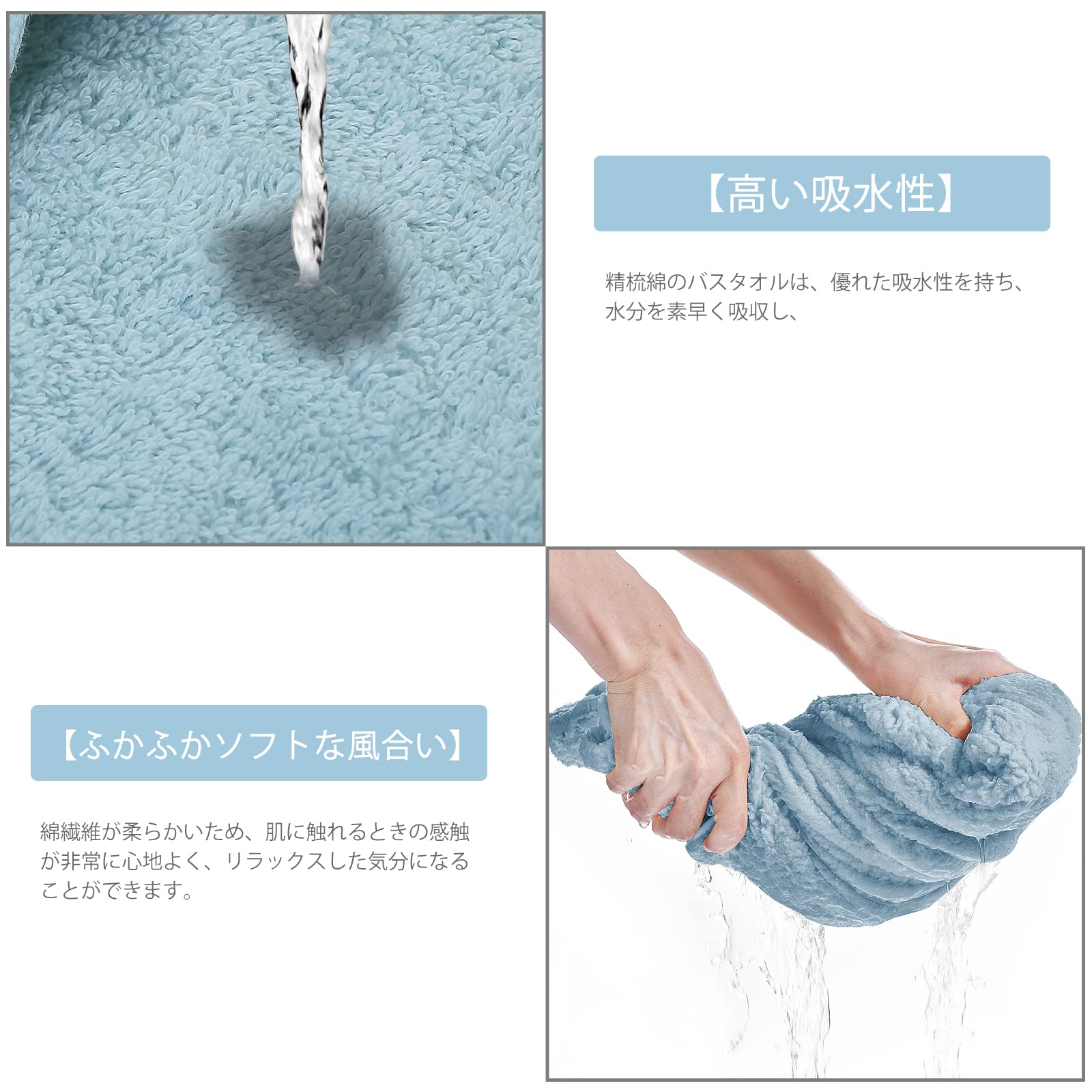 100% 綿 4枚 ホテルスタイル バスタオル セット タオル コットン 人気 ふわふわ の肌触り 吸水 (バスタオル, ライトグリーン)