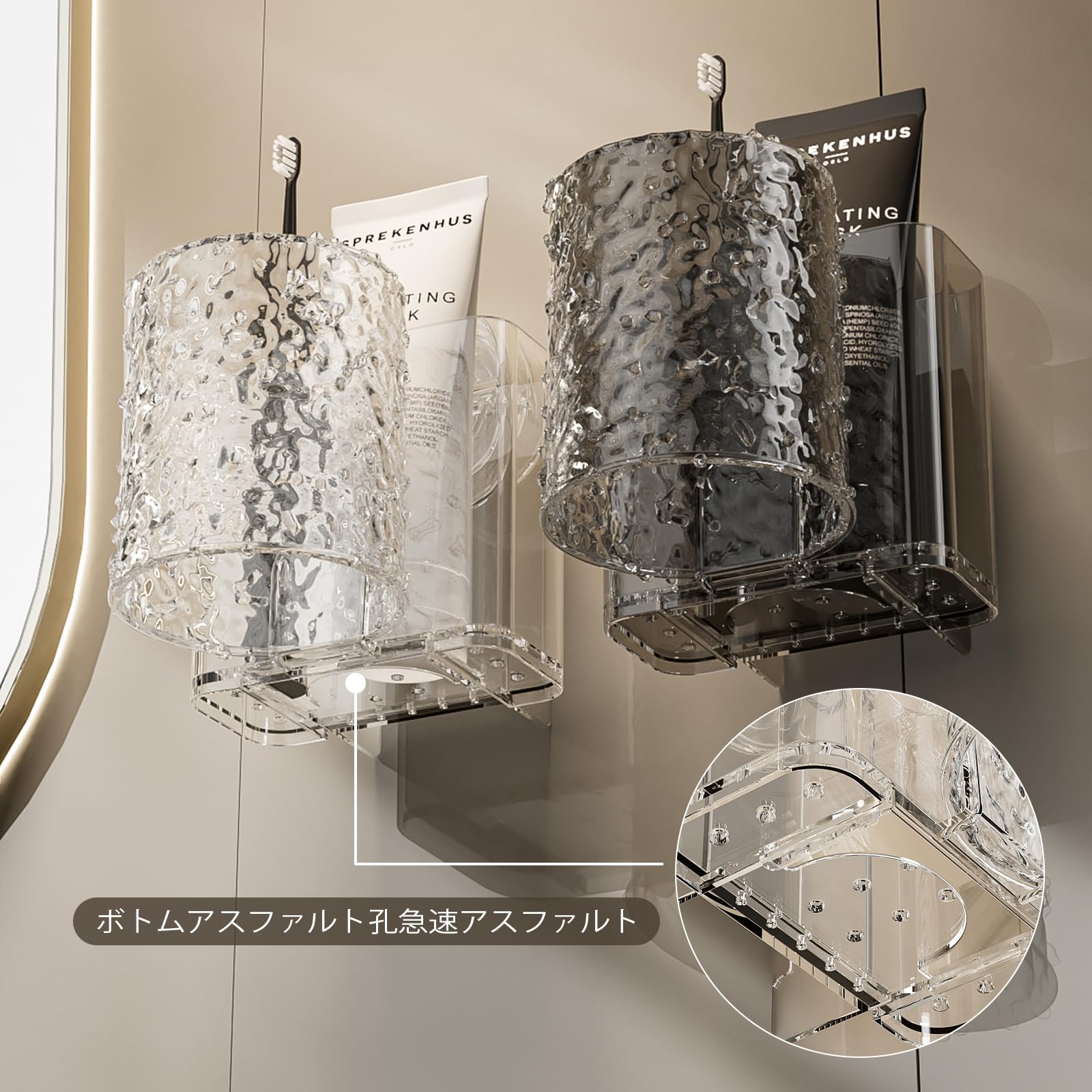 HEMAUTAG 歯ブラシスタンド 歯ブラシホルダー 吸盤 洗面所 収納 水垢防止防塵 健康おしゃれ 創造性 コップスタンド 用来電動歯ブラシ 歯磨き粉カップ スタンド 歯ブラシホルダー×1個 グレー
