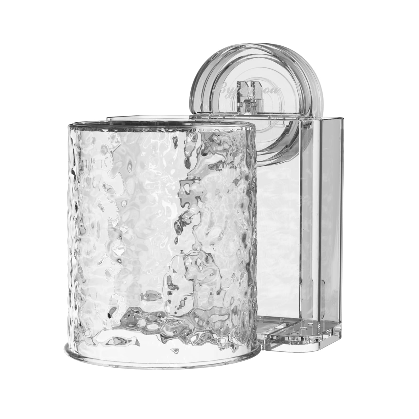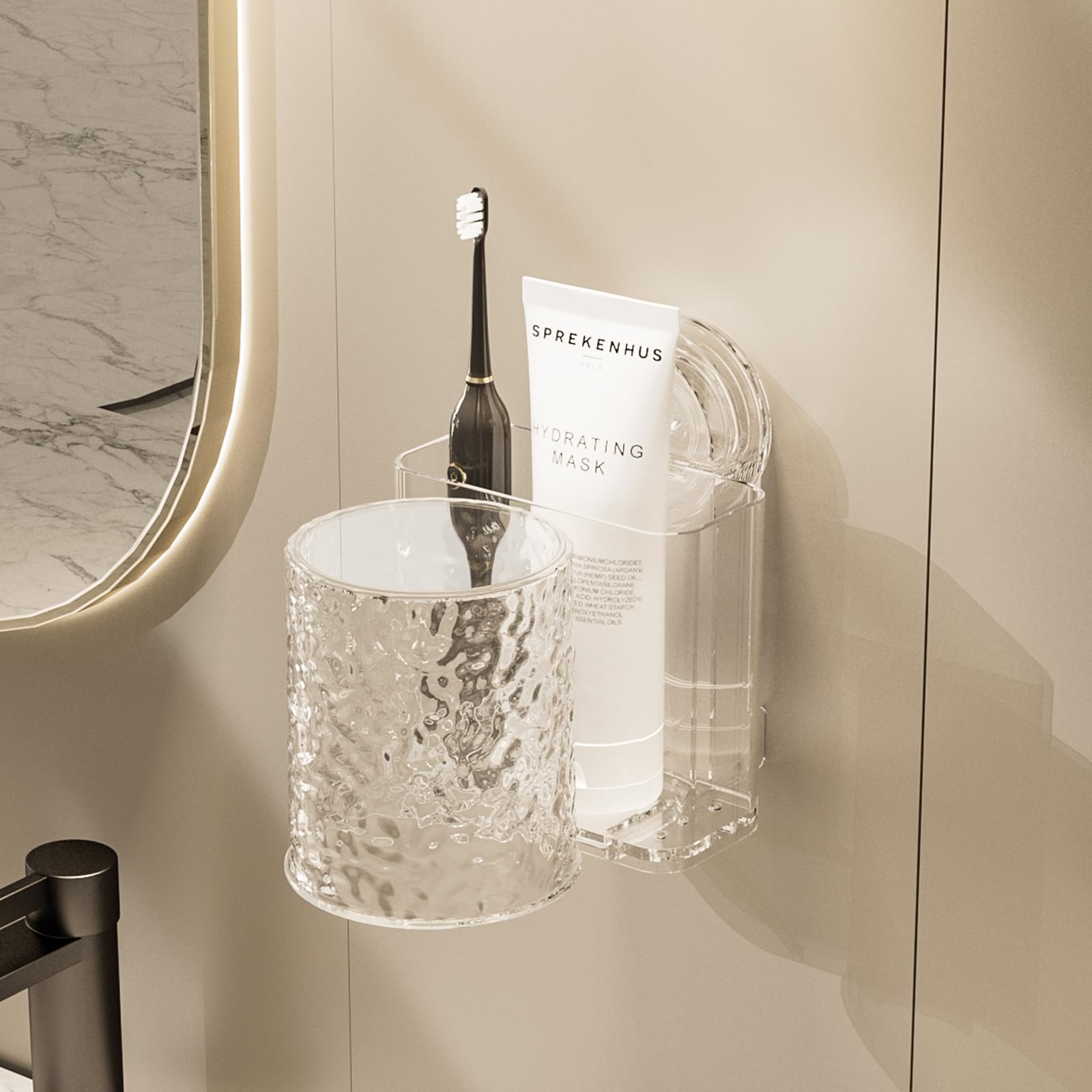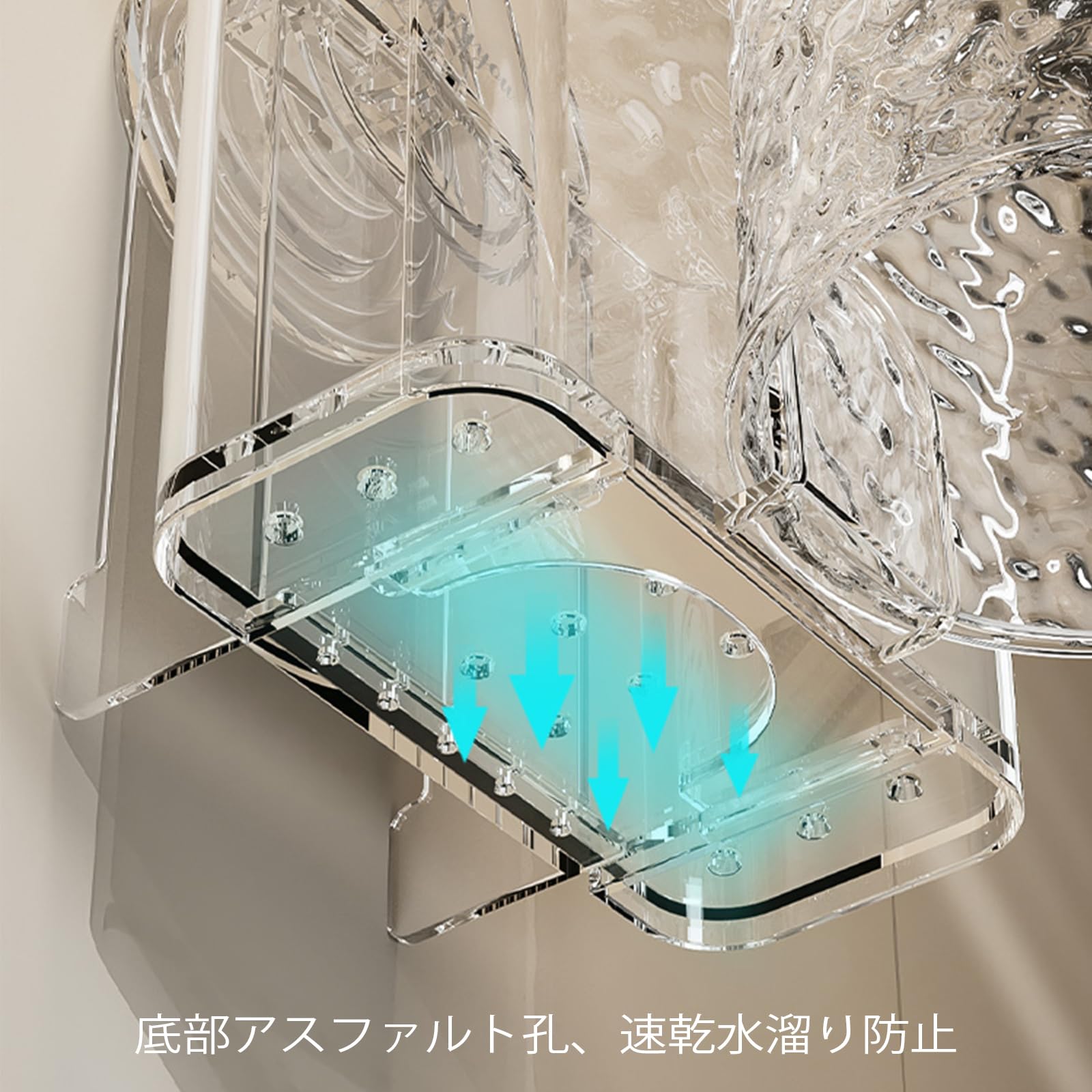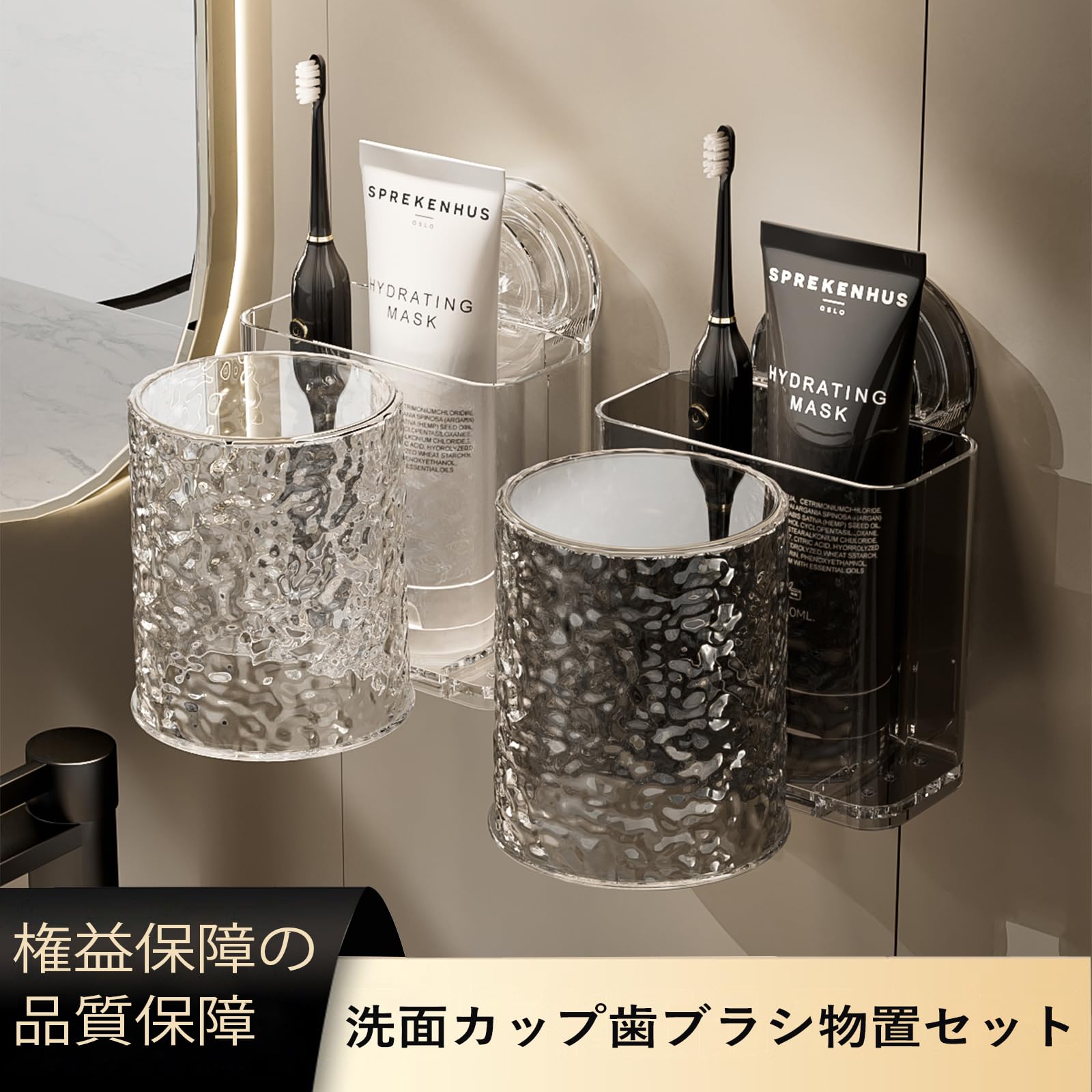 歯ブラシスタンド 浮かせる (強力真空吸盤/多機能収納) うがいコップ 歯磨きコップ 一体化 洗面所 衛生的 歯ブラシ&剃刀収納 すっきり整理 (とうめいしょく)