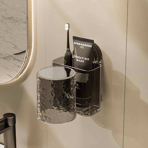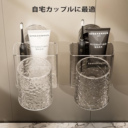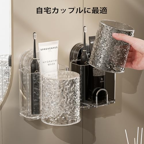 YartanXing 歯ブラシスタンド 歯ブラシホルダー 壁掛け おしゃれ 歯ブラシ立て 歯磨き粉ホルダー 電動歯ブラシスタンド 外せる 浮かせる 収納 歯ブラシたて 歯磨き コップ 洗面所 穴あけ不要 トイレタリー収納 多機能 コップ立て うがいコップ 家族 (歯磨きコップ×4)