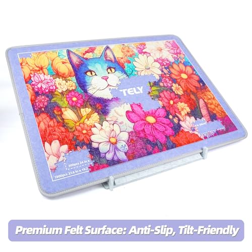 TELY(テリー) 折りたたみ式ジグソーパズルボード - 頑丈なハードフェルト 滑り止め表面 ポータブル&軽量 最大1000ピースに対応