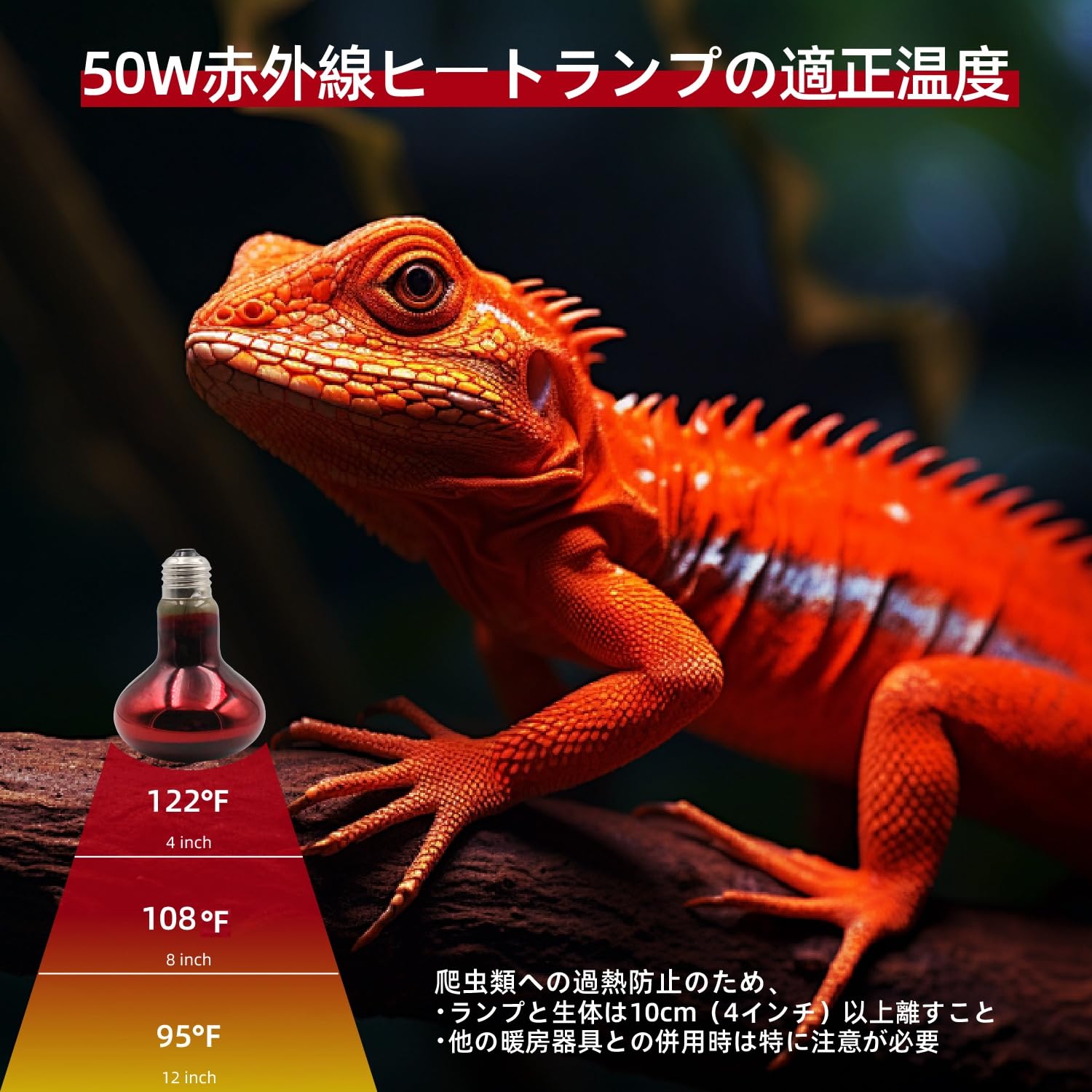 LUCKY HERP ヒートグロー 赤外線照射スポットランプ 50W 2個 保温球 バスキングライト 爬虫類 赤外線ライト 赤い光•UVA 爬虫類ライト 昼夜兼用集光型スポットランプ トカゲ類・亀等 爬虫類 両生類用