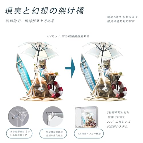 フィギュアケース 台座ミラー 背面ミラー 簡単組み立て 堅牢なアクリル UVカット 透明な コレクションケース アクリルケース ディスプレイケース フィギュア収納 付属アクセサリー付き (幅35×奥行20×高さ20cm)