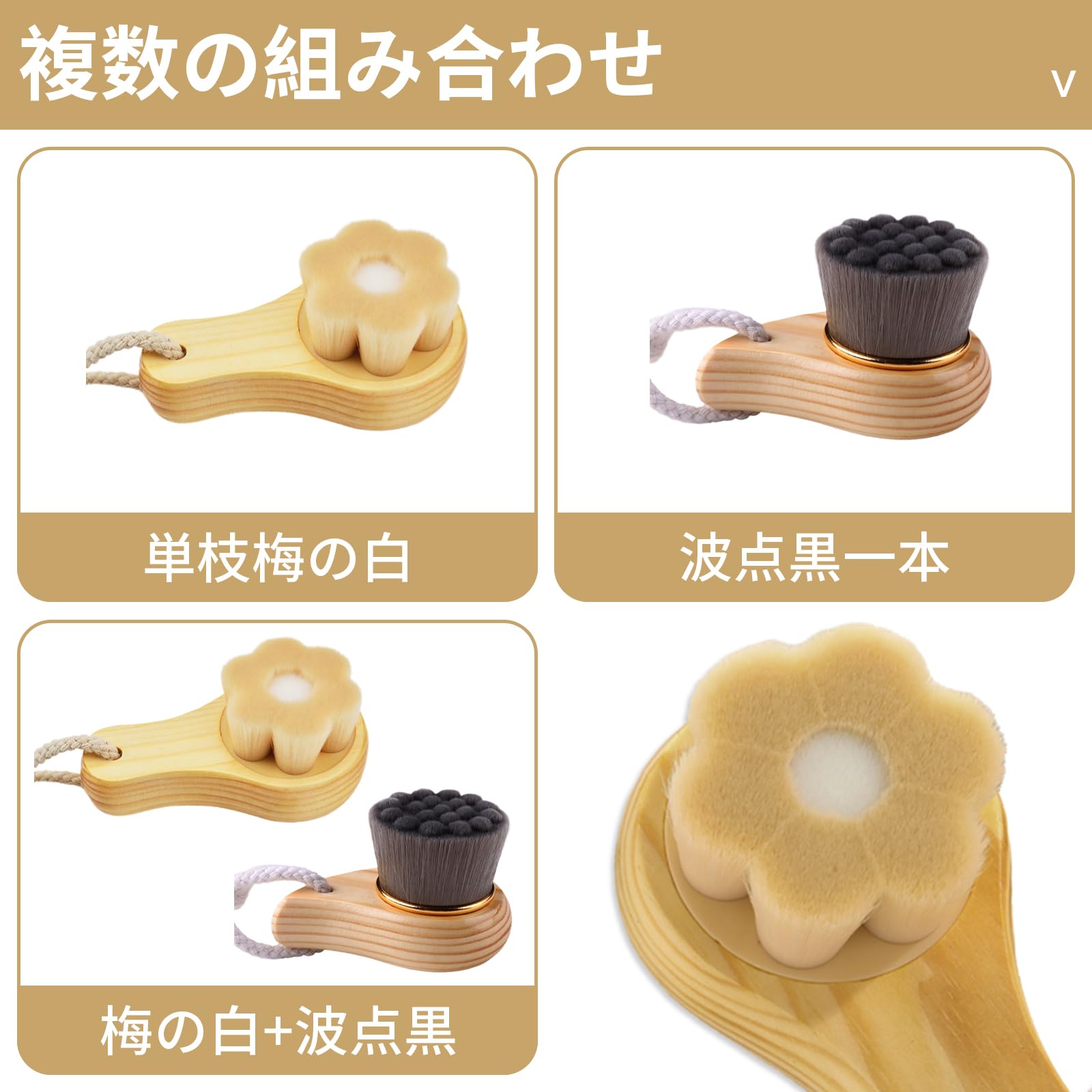 洗顔ブラシ|木製スタンド付き|自然素材ハンドル|超極細毛|吊り下げ収納可|1本/2本セット (white)