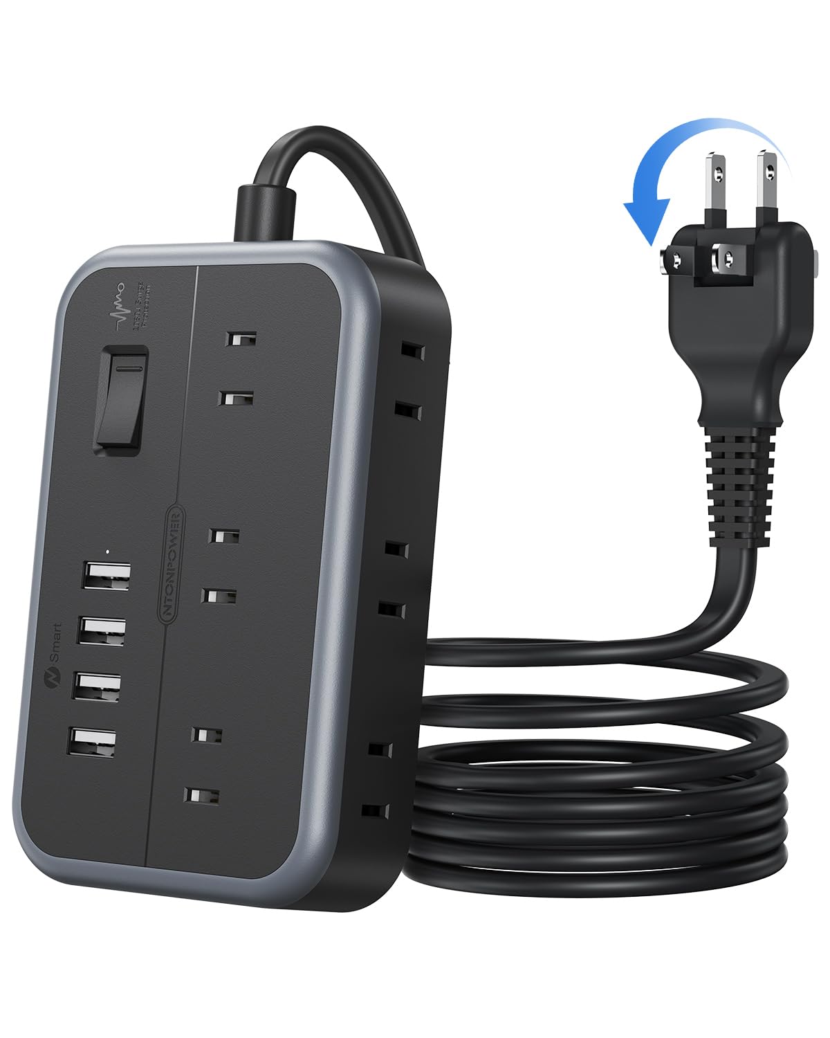 NTONPOWER 延長コード 1m 電源タップ usb付き タコ足配線 電源コード 6個AC口 4個USB-A 雷ガード 蛸足コンセン コンセント 分岐 たこあし oaタップ 延長コード オシャレ 壁掛け/卓上に ブラック