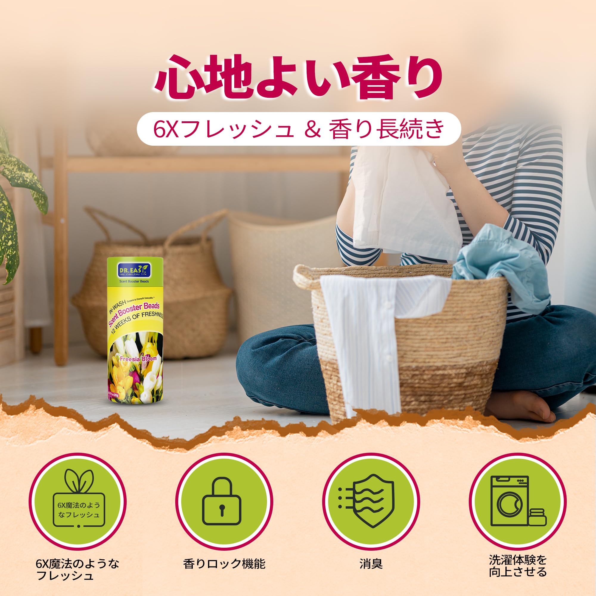 DR.EASY洗濯用香り付けビーズ フローラル フリージア 大容量 衣類の香りづけ専用 香り12週間長続き 312g