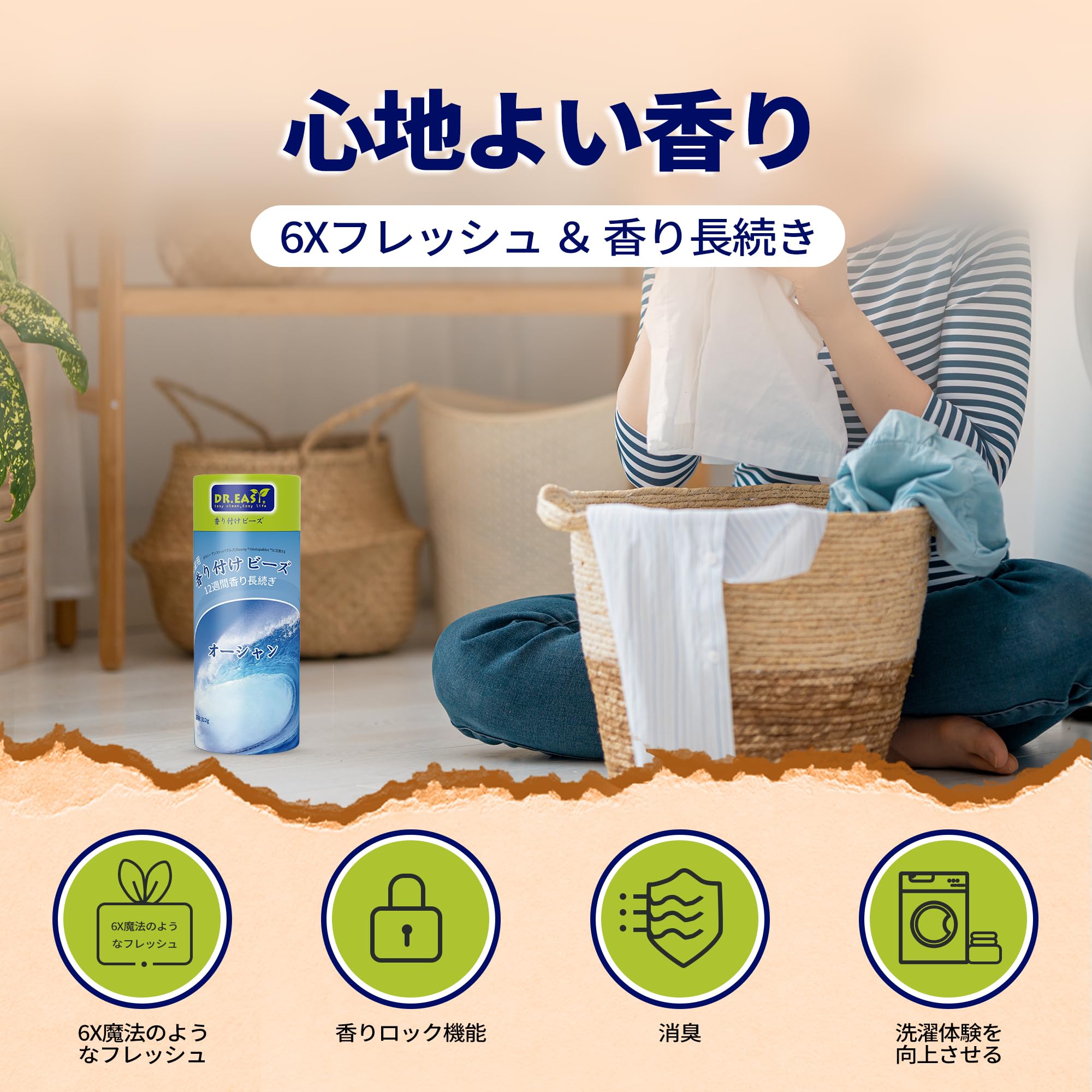 DR.EASY洗濯用香り付けビーズ オーシャン 大容量 衣類の香りづけ専用 香り12週間長続き 312g