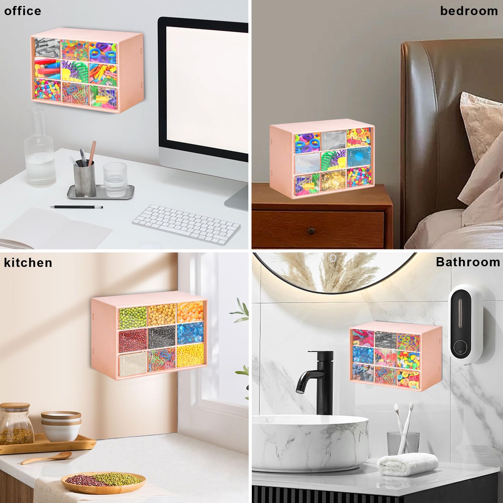 2個 パーツキャビネット 引き出し小物入れ 卓上収納ボックス 9分仕切り防塵透明雑貨収納 文具収納 道具箱 壁掛け可能なアクセサリーケース チェスト ジュエリー収納 オーガナイザー18*11.7*9.7CM