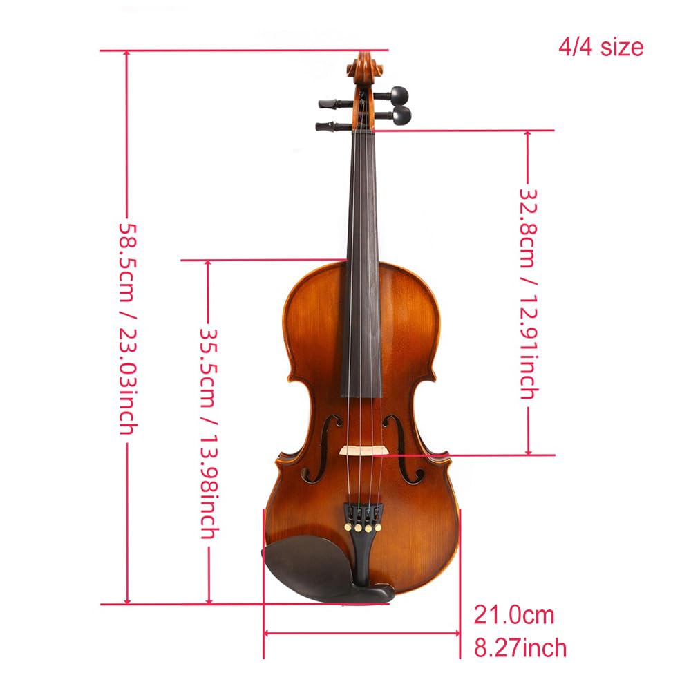 Yinfente 4/4 3/4 1/2 1/4 アコースティックバイオリンキット 4弦 メープルスプルーストップ エボニー継手 無垢材 初心者、子供、学生ケース、弓、予備の弦 ハンドメイド (4/4)