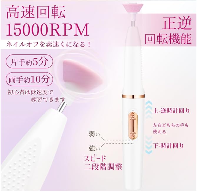 さえだ ネイルマシン ビット 電動ネイルマシン コードレス ネイルオフマシーン 甘皮処理 爪磨き ネイルケアセット ネイルマシン プロ用 初心者 ジェルネイル 専用ビット11個セット マニキュア対応 ネイルドリル 正逆回転 無段階変速 セルフオフ 自宅ネイルサロン用 (ホワイト)