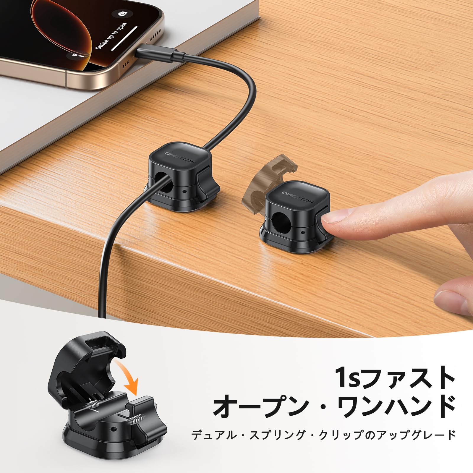 OMOTON ケーブルホルダー, 6個セットバネ式ケーブルクリップ 卓上ケーブル収納 強力粘着, 簡単に開くことができ,整然とした充電コード 収納配線止め, デスク 車内 オフィス ナイトテーブル などに対応