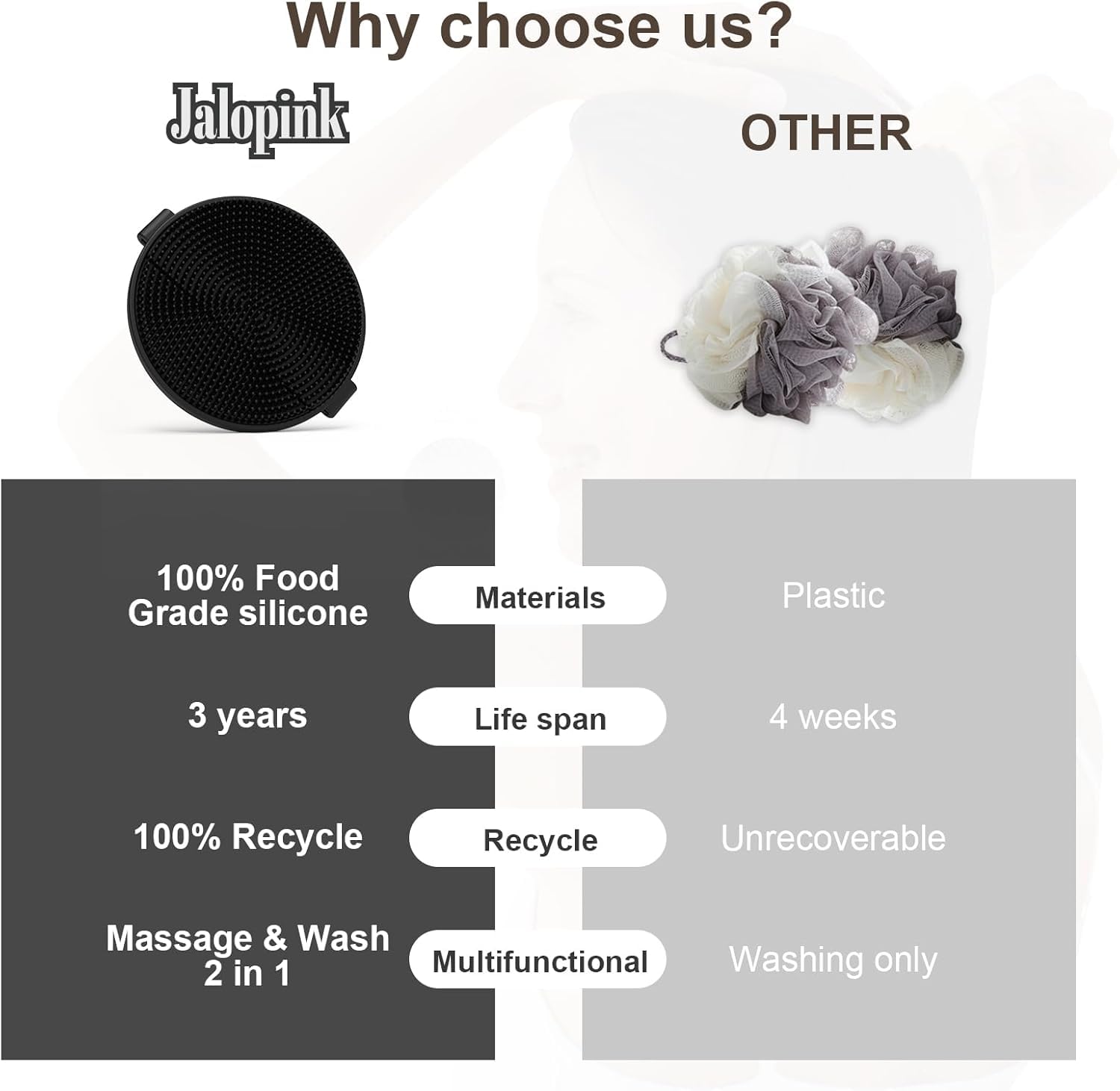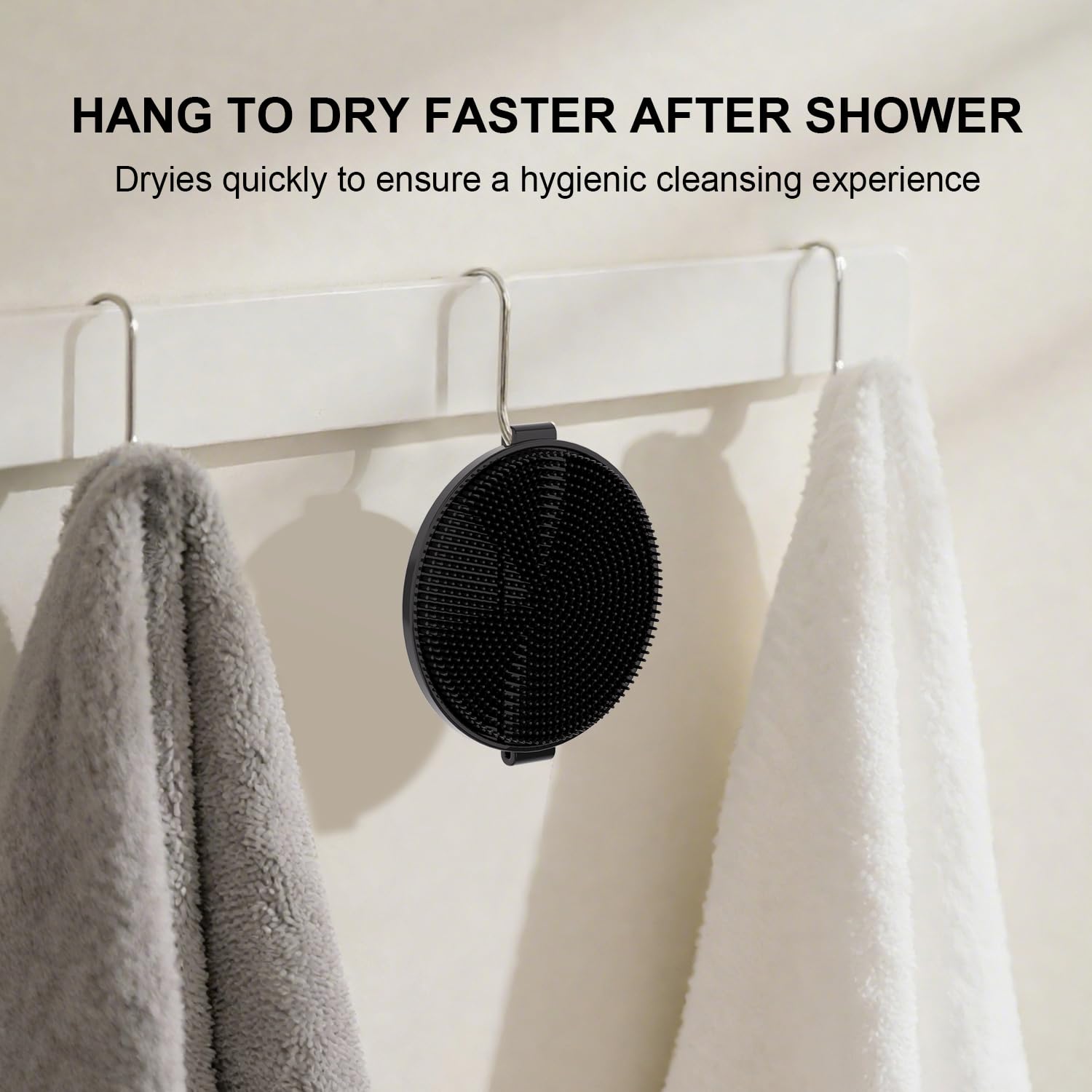 シャワーのためのシリコーン ボディ Scrubber の角質の除去剤-シリコーンのヘチマ、敏感肌、再使用可能で、環境に優しく、耐久財および泡立つ赤ん坊のための柔らかい清潔になるシャワーのブラシ、1 パック (黒色)