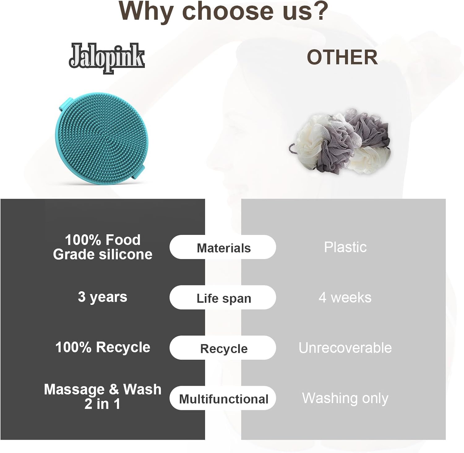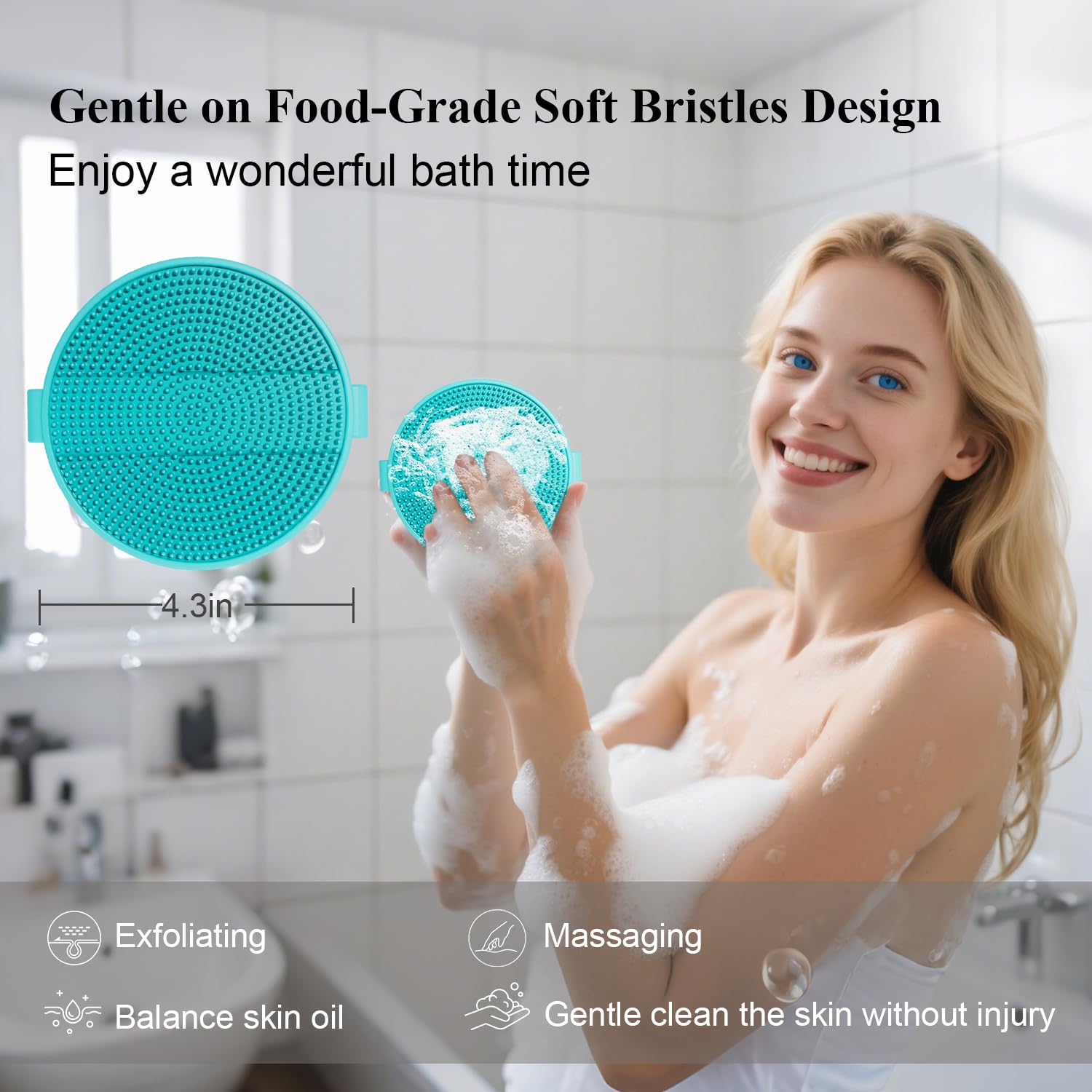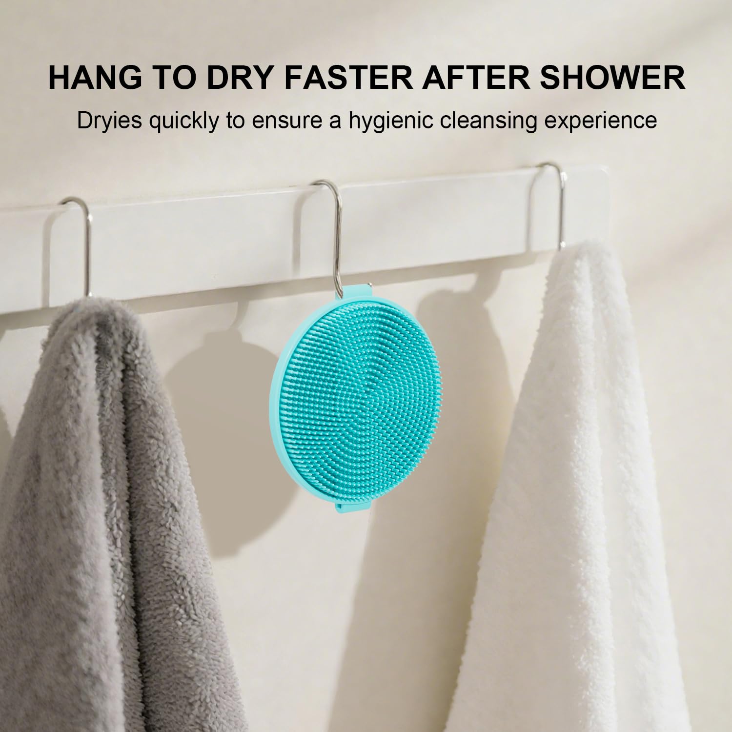 シャワーのためのシリコーン ボディ Scrubber の角質の除去剤-シリコーンのヘチマ、敏感肌、再使用可能で、環境に優しく、耐久財および泡立つ赤ん坊のための柔らかい清潔になるシャワーのブラシ、1 パック (ブルー)