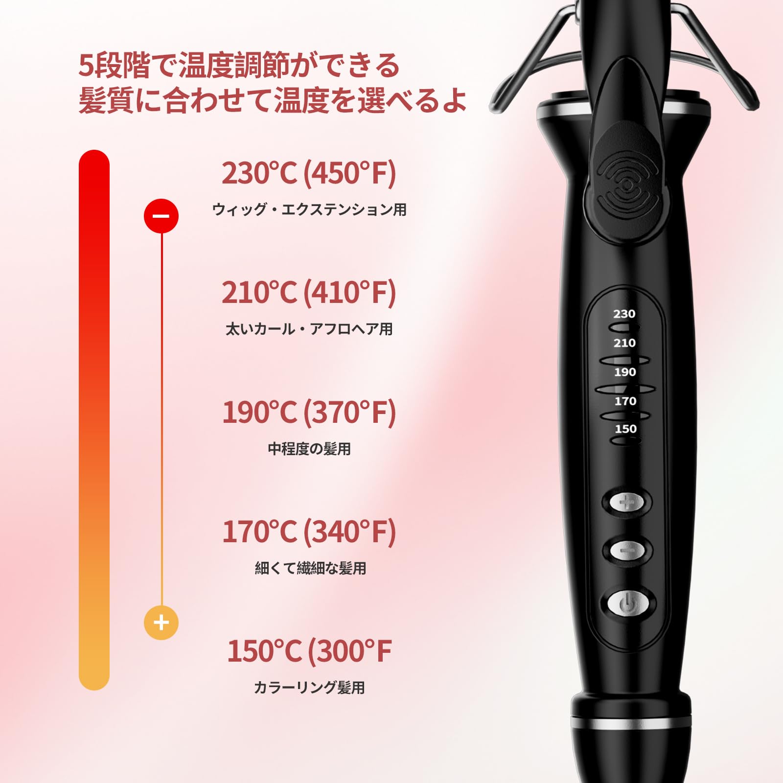 Ryanboo オートカールアイロン ミラカール automatic hair curler 自動カールアイロン 自動コテ ヘアアイロン カール 10段階温度調整 MAX230℃ 海外対応 MRBWTI