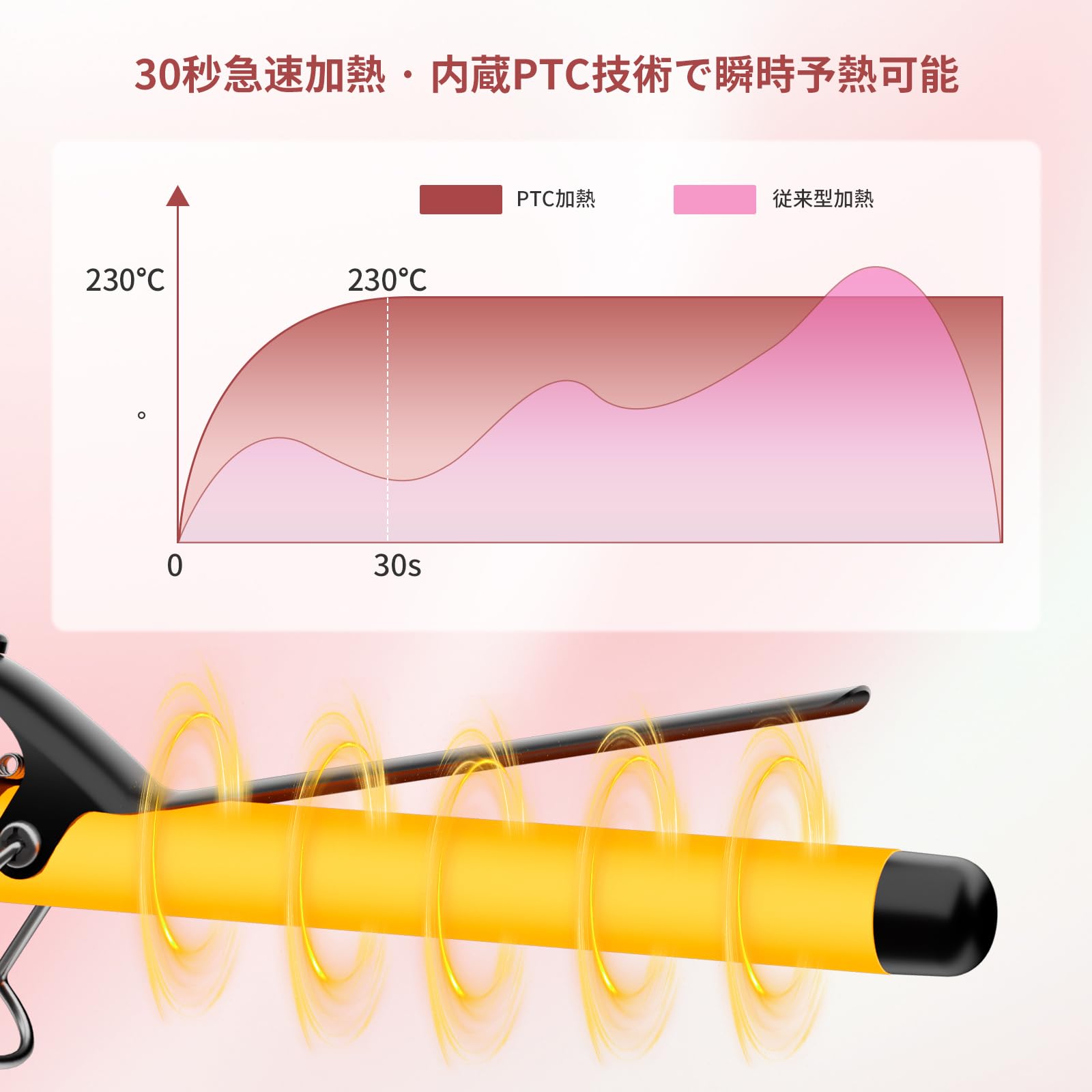 SAOSA ヘアアイロン カール 9mm コテ カールアイロン 極細 セラミック プロ仕様 急速加熱 60℃-230℃ 自動電源OFF 男女兼用 海外対応