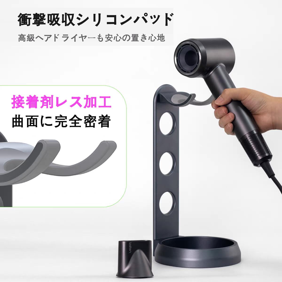 KAIXUANMAN ドライヤースタンド 置き型 卓上 dysonドライヤー用 収納スタンド ドライヤー置き アタッチメント収納 コード収納 配線整理 アルミニウム ダイソン用 ドライヤーホルダー 浴室収納 置物 バス用品 ガンメタリック