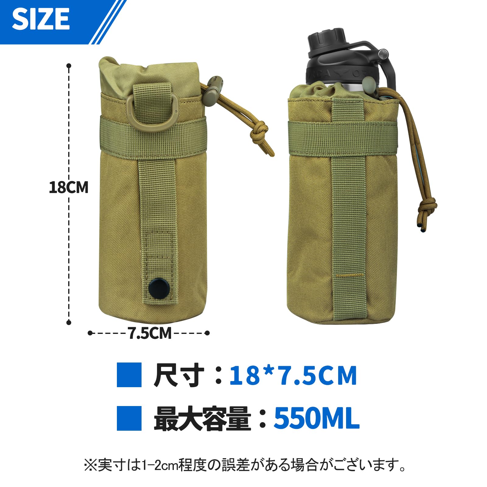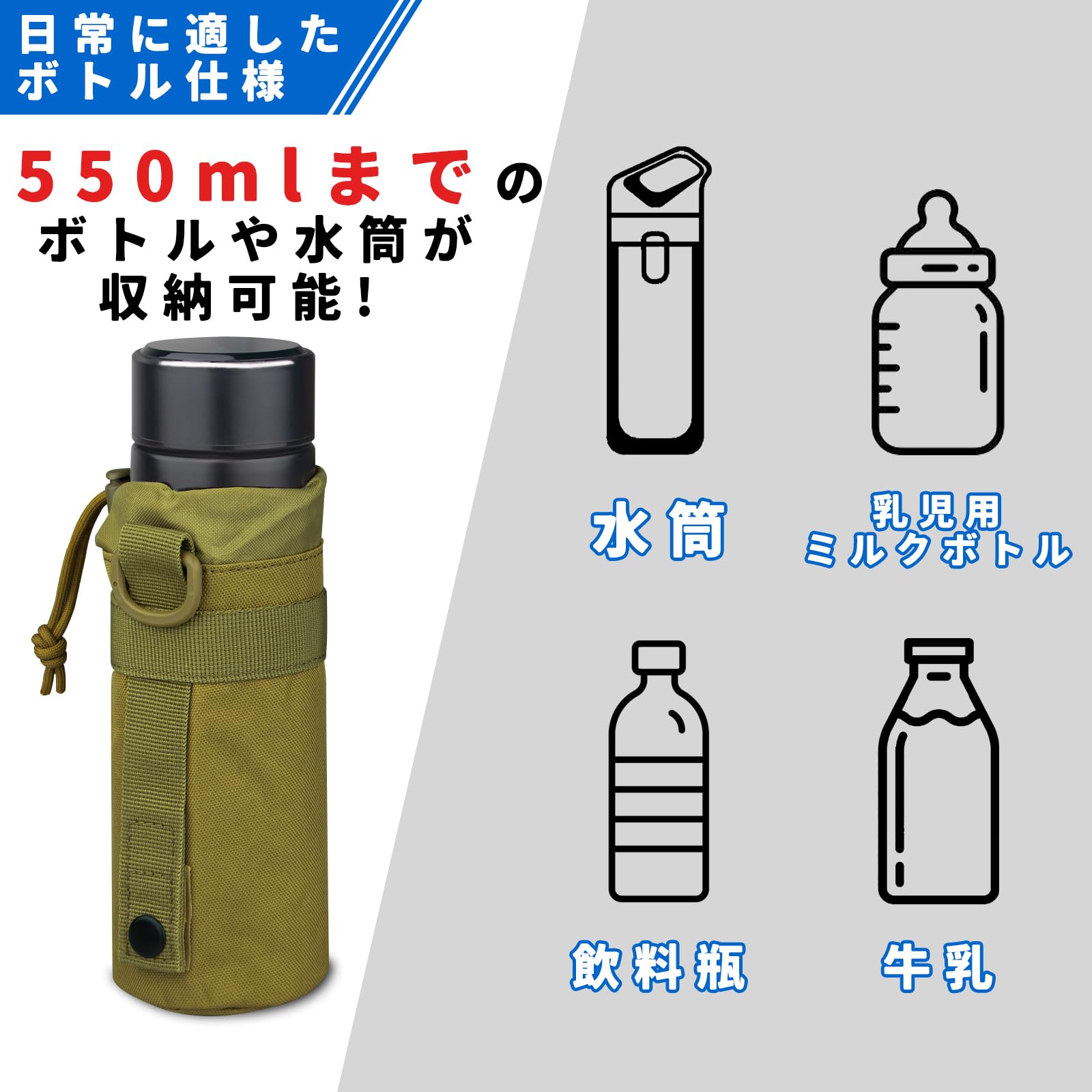 水筒ポーチ ペットボトル550ml ペットボトルホルダー Molleモール対応 ドリンクホルダー ペットボトルケース ウォーターボトルバッグ アウトドア/キャンプ/フィットネス/通勤/旅行/サイクリング 水筒 収納 (ミリタリーグリーン)