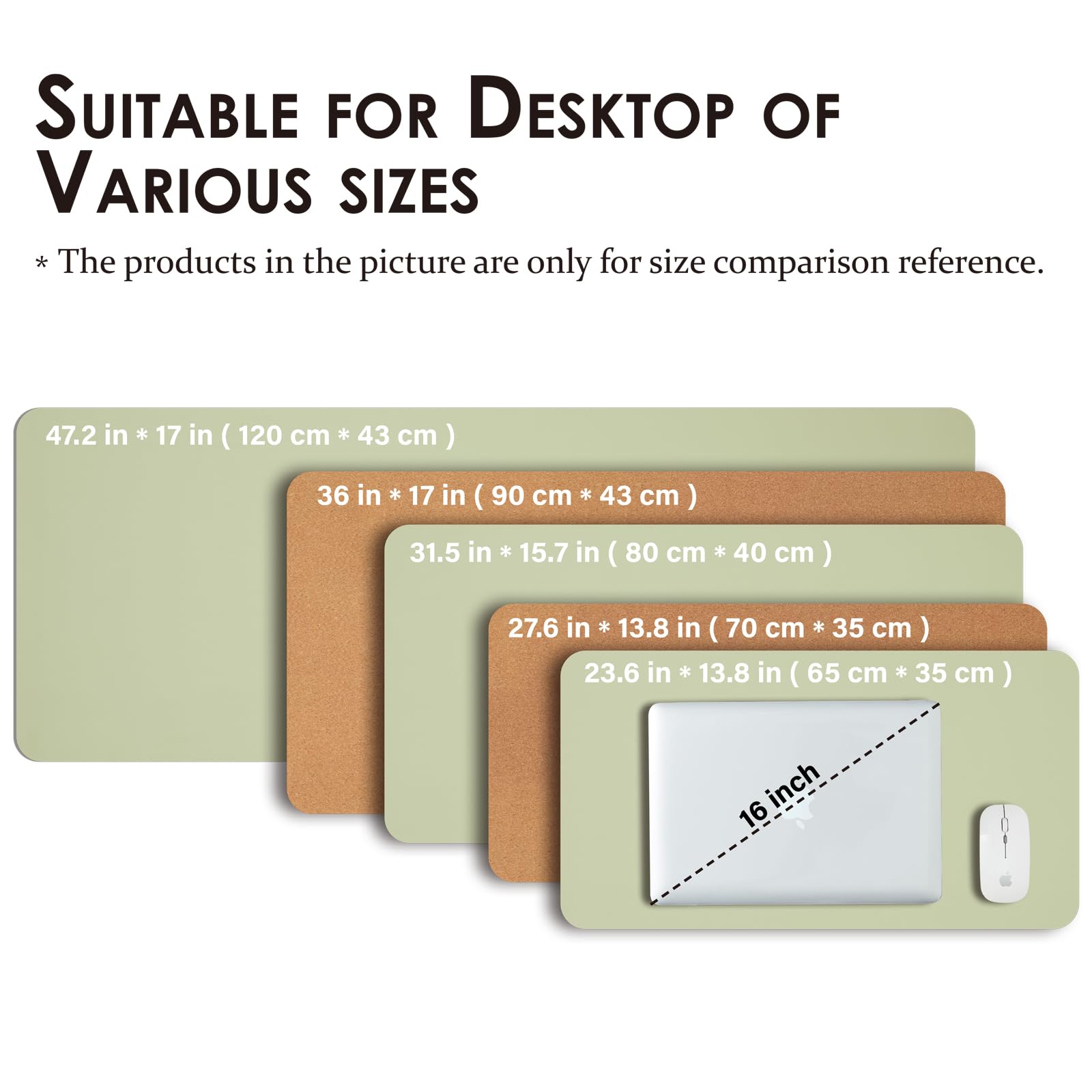 ナチュラルコルク &PU両面デスクマット、大型マウスパッド、デスクプロテクター、防水キーボードマット、オフィス/家庭/ゲーム/装飾に最適(抹茶グリーン、90cm*43cm)