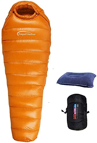 Fengzel Outdoor マミー型 寝袋 ダウン90% 400-2500g高級ダウン詰め 美しい光沢 連結可能 多色 最低使用温度-45℃ アウトドア 軽量 コンパクト 冬用 ダウンシュラフ (極限厳寒用(2000gダウン詰め),オレンジ)
