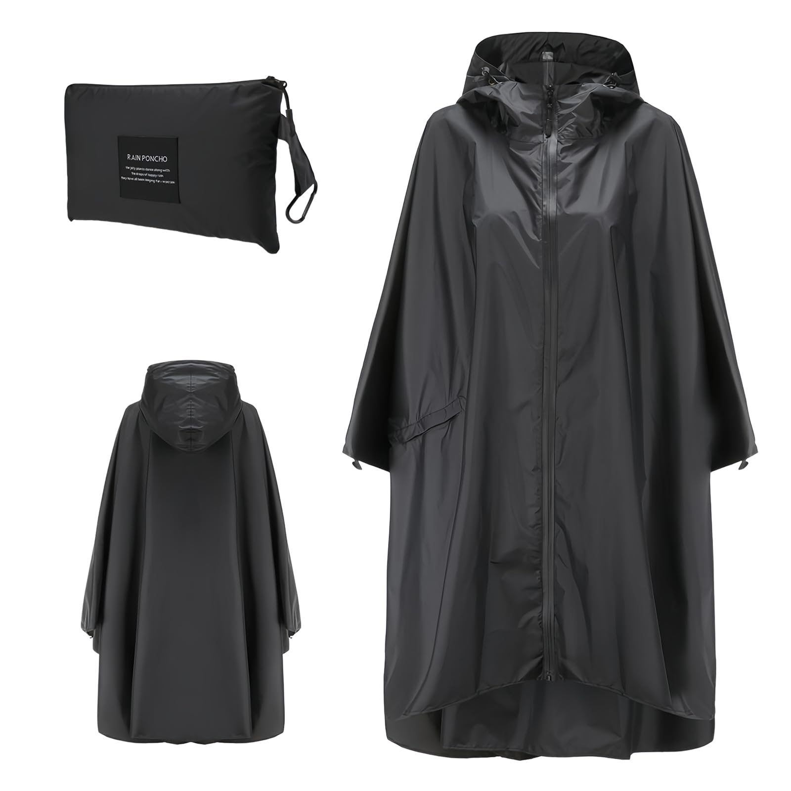 SUKIYO レディース メンズ 変形できる魔法レインコート ポンチョ かっぱ 雨具 自転車 オートバイ スクーター 原付 通勤 通学 リュック対応 登山 軽量 収納袋付き おしゃれ 防風 防水 防塵 防雪 散歩 梅雨対策 男女兼用 ブラック XL
