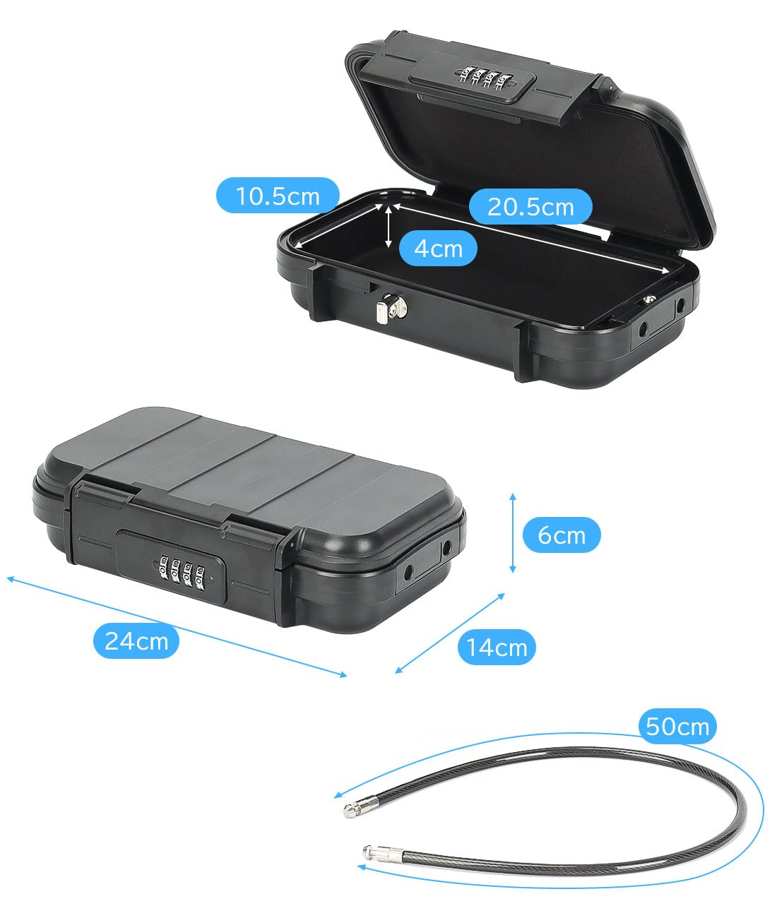 貴重品ボックス キーボックス 収納ボックス ダイヤル式 3桁暗証番号 大容量 ワイヤー付き 工事不要 強化プラスチック製 軽量化 防水 防塵 錆びにくい 貴重品収納 ミニ金庫 盗難防止 鍵共有 玄関 倉庫 【文君の店】 (ブルー)