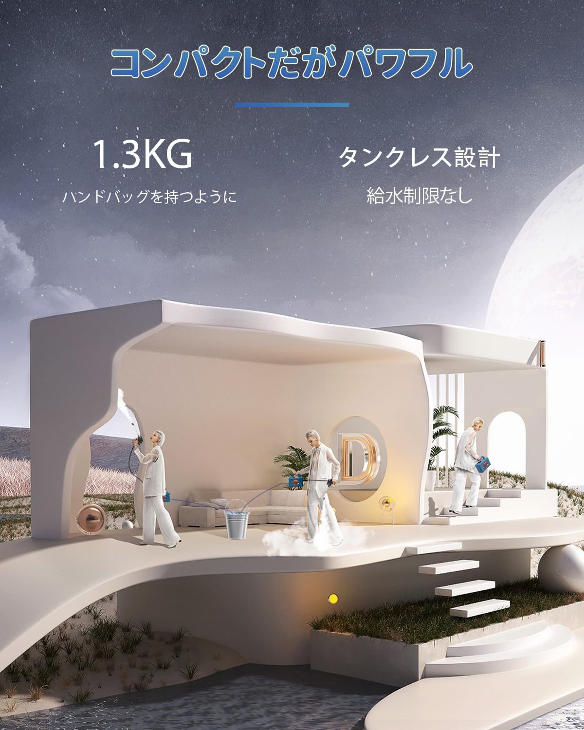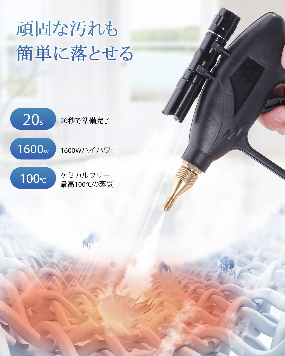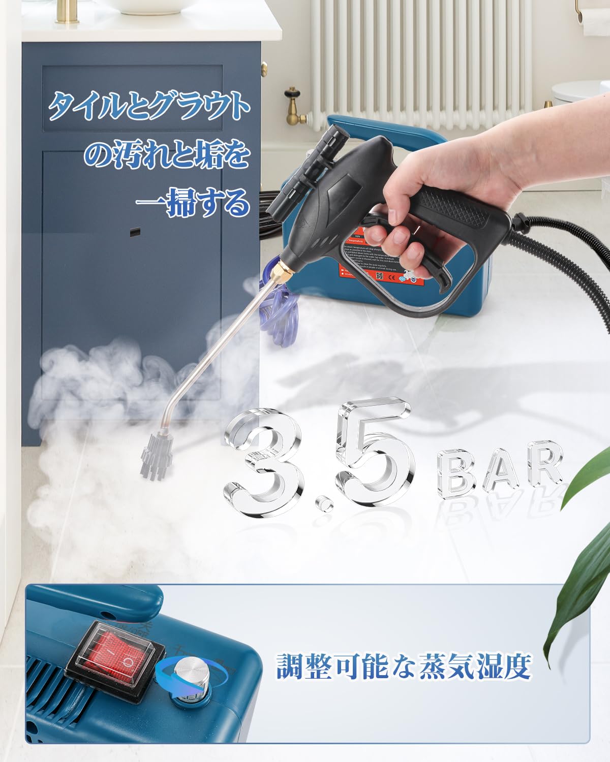 Moongiantgo スチームクリーナー 蒸気洗浄機 高温蒸気噴射 20秒で蒸気排出 連続スチーム ポータブル 収納ケース付き 湿度調節可能 バケツから給水 片手で持ち上げる 部屋/窓/キッチン/トイレ掃除機 小型軽量 日本語説明書