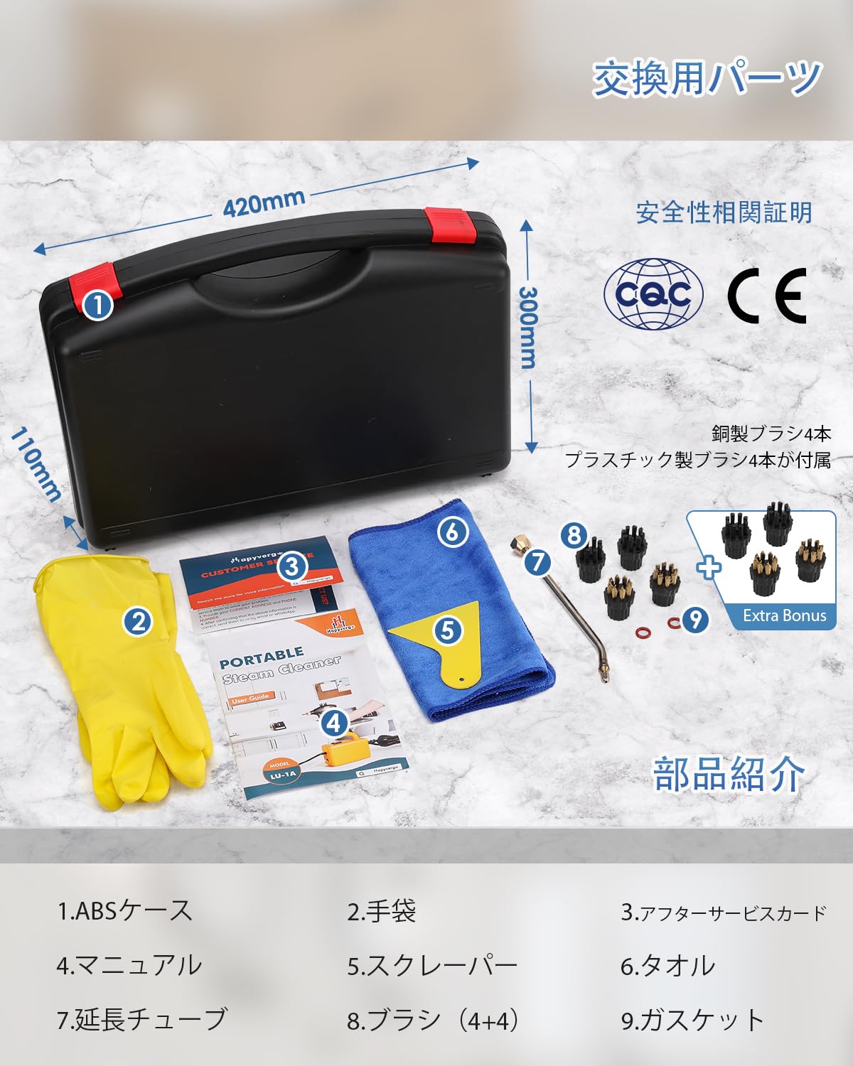 Hapyvergo スチームクリーナー 高温蒸気洗浄機 20S速熱 タンクレス 掃除ブラシ8個付 100℃高温スチーム 1600W 家庭用スチーム洗浄 キッチン/お風呂/レンジフード/車などのお掃除に 収納ケース付 日本語取扱説明書