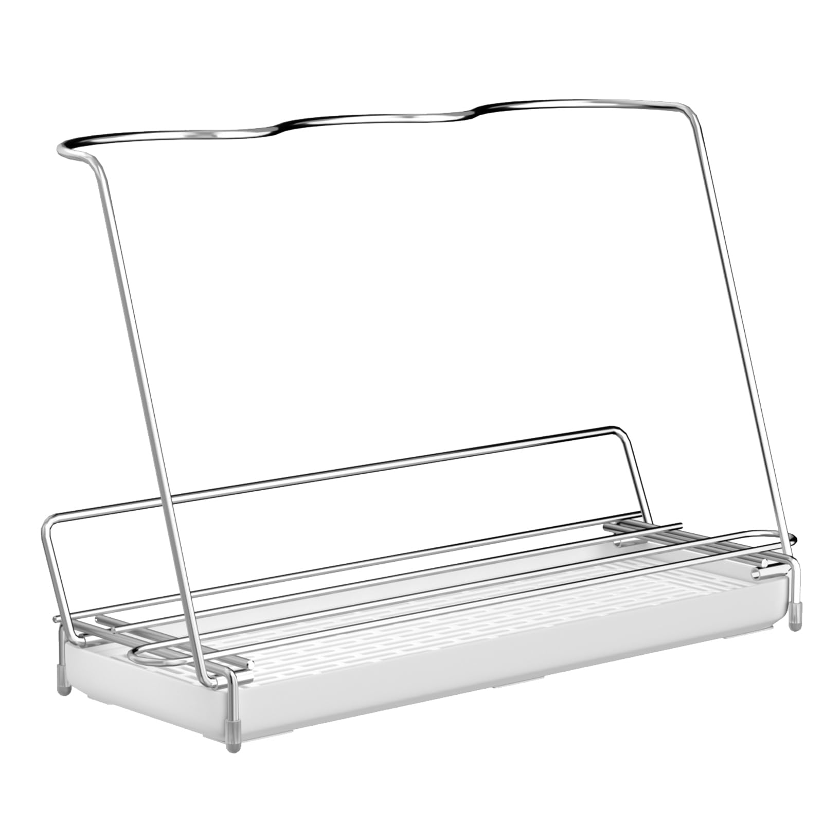SANNO スライド式水切りかご 伸縮水切りワイヤーバスケット 食器水切りラック キッチンラック 皿置き グレーのカトラリーホルダー付き ステンレス製