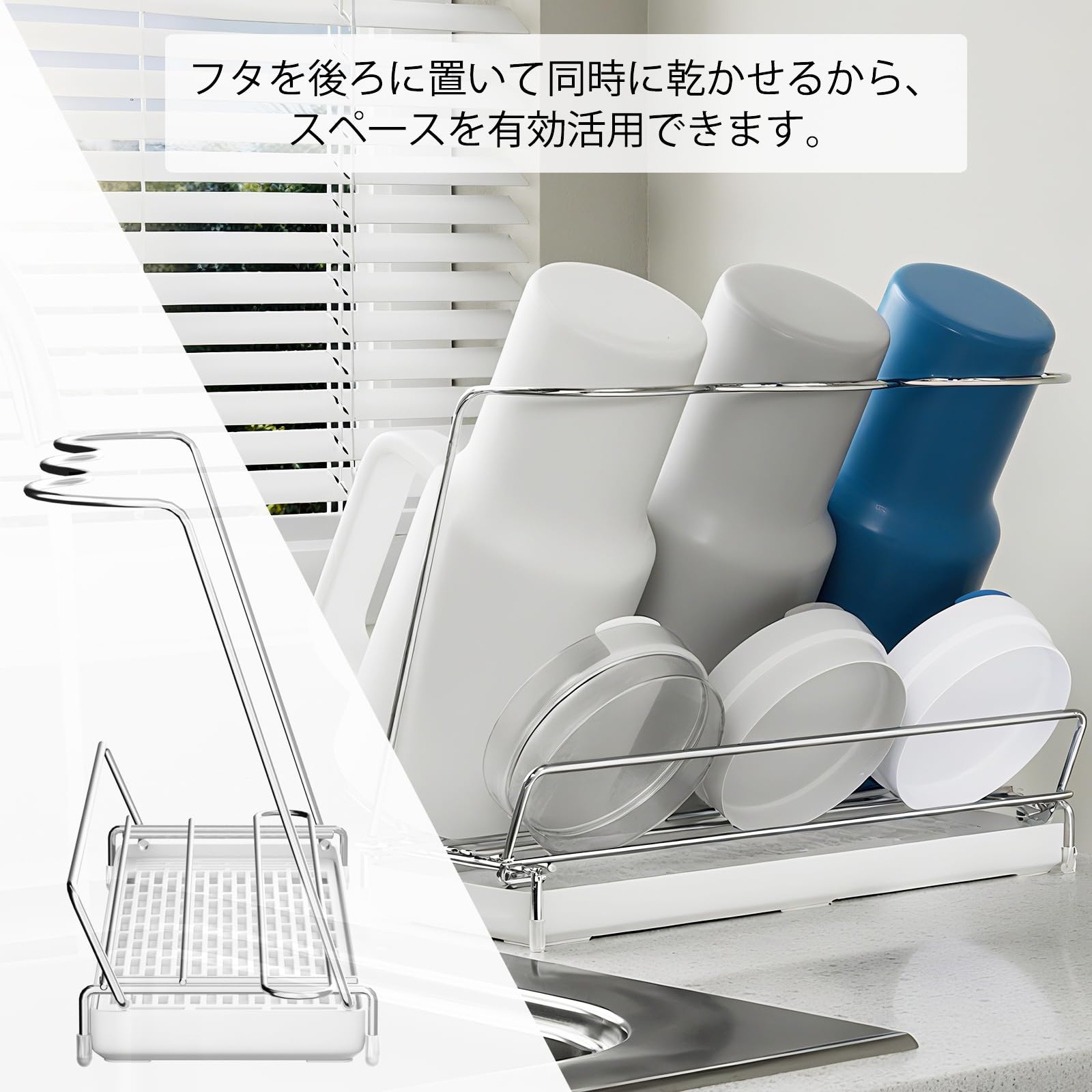 Poyway ボトルスタンド 折畳式ジャグボトルスタンド 水筒 スタンド 省スペース 滑り止めバー付き 水切りトレー付き 水切りラック 水筒たて 水筒干し コップ マグボトル 乾かす