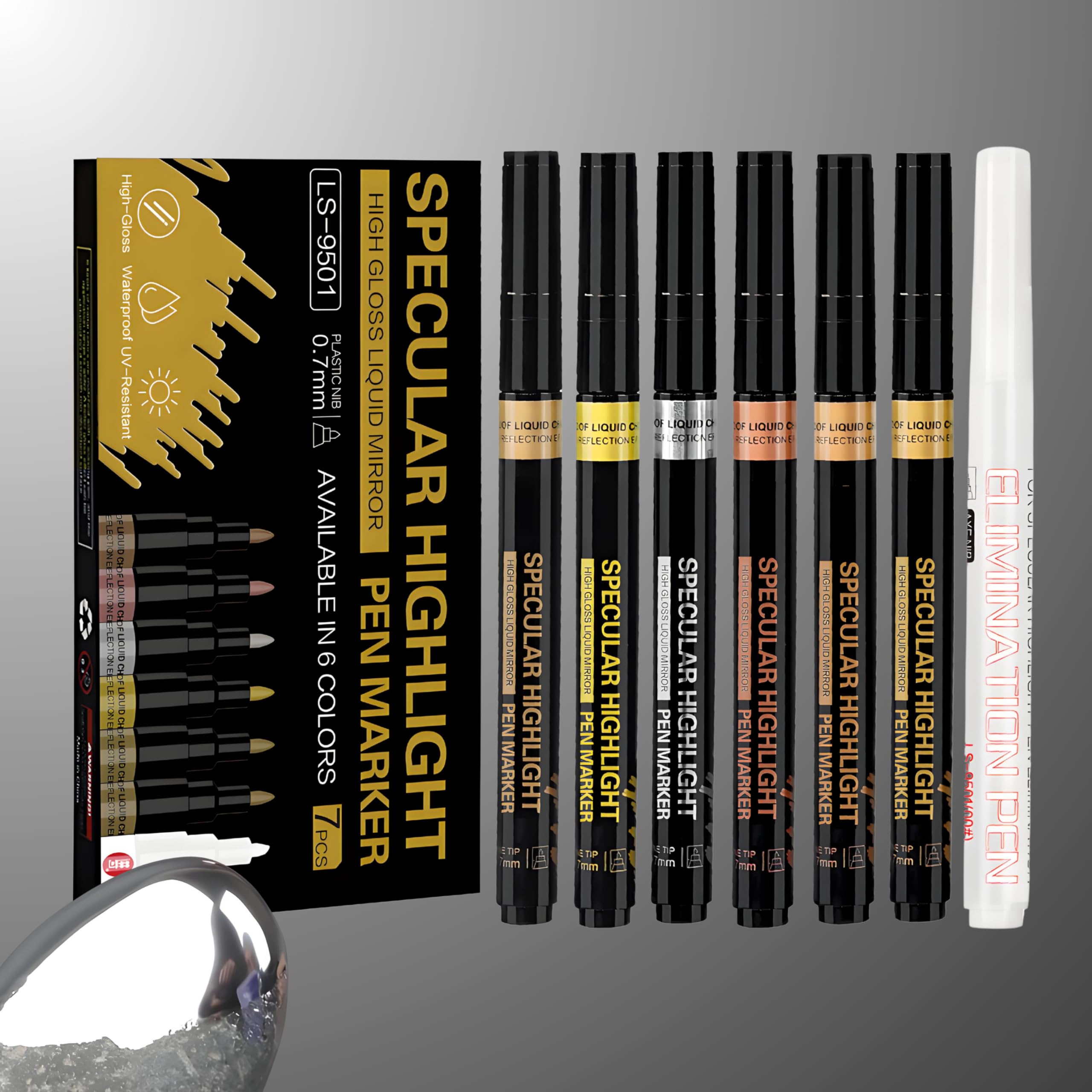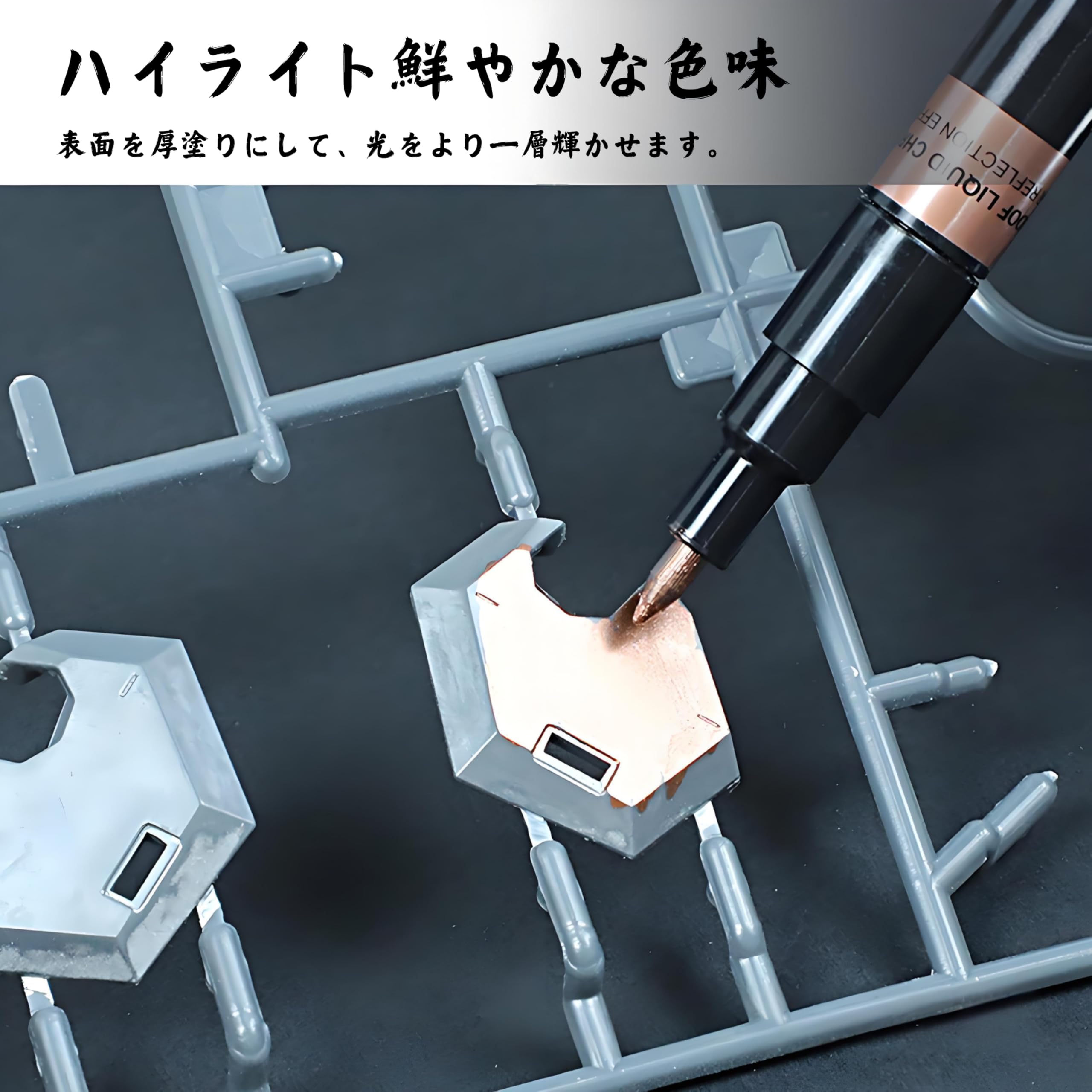 ハイライトミラークロムメッキマーカー 金属メッキ用マーカーセット 消去ペン付き 反射ペンキ DIYガンダムモデル 塗装 ロボットや車や飛行機のプラモデルにぴったり