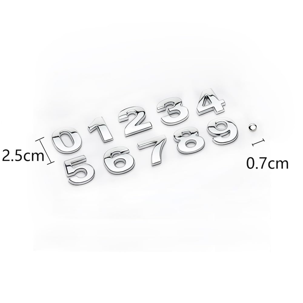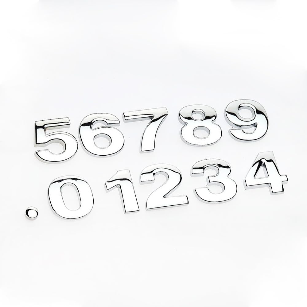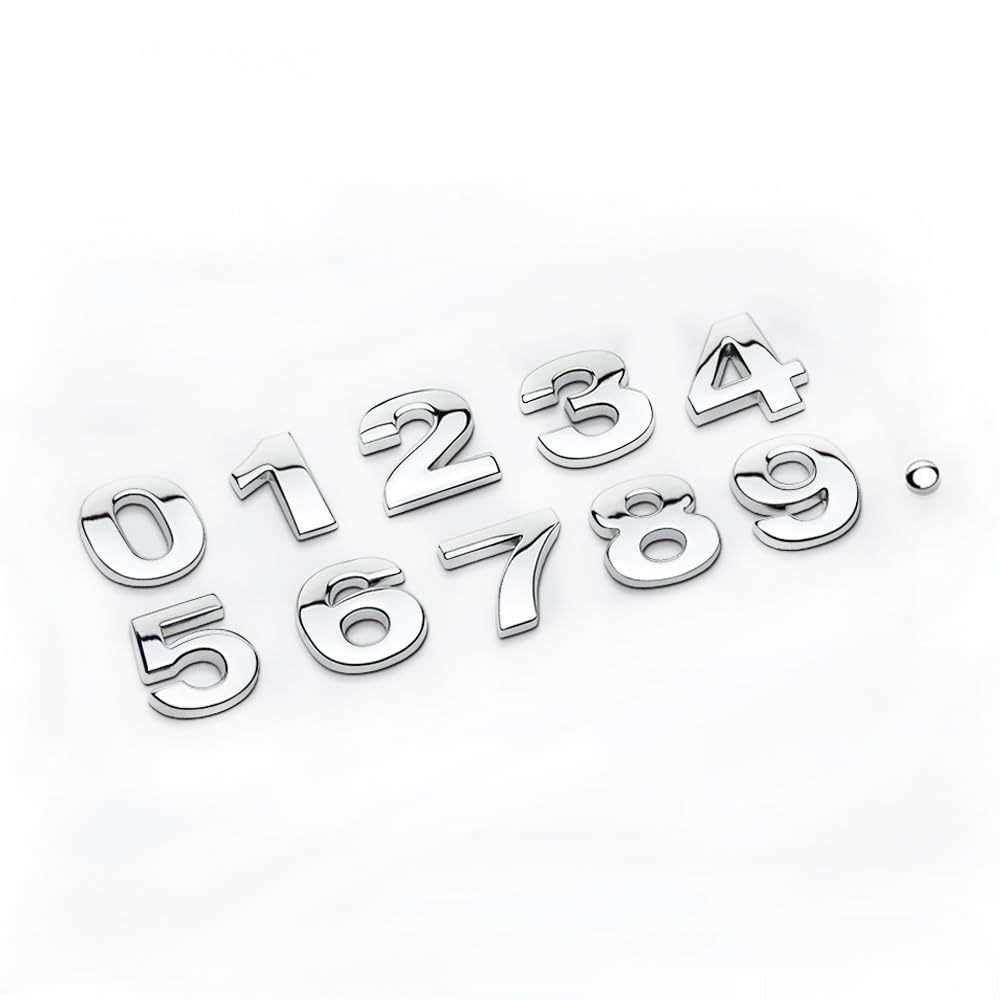 srasakan 車用 立体 エンブレム ステッカー 装飾 ドレスアップ 外装 パーツ 文字 数字 ナンバー 記号 ステッカー (シルバー, 11個入り)