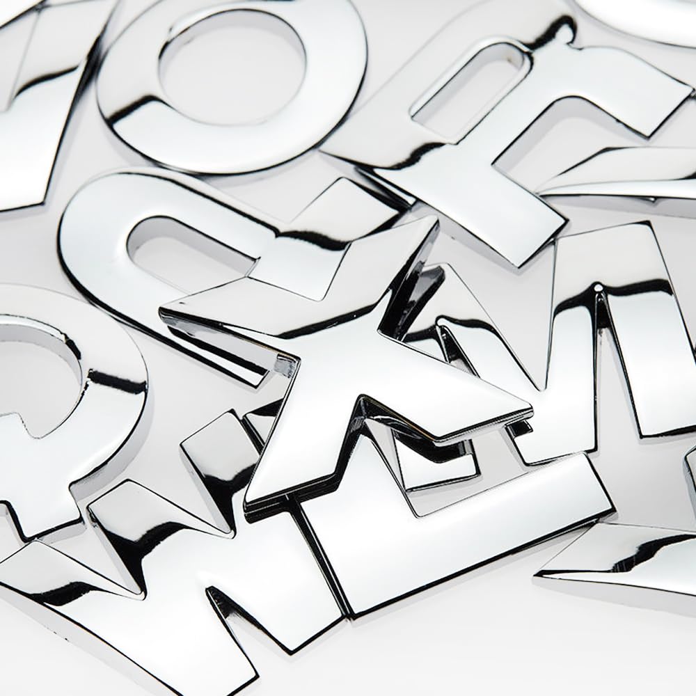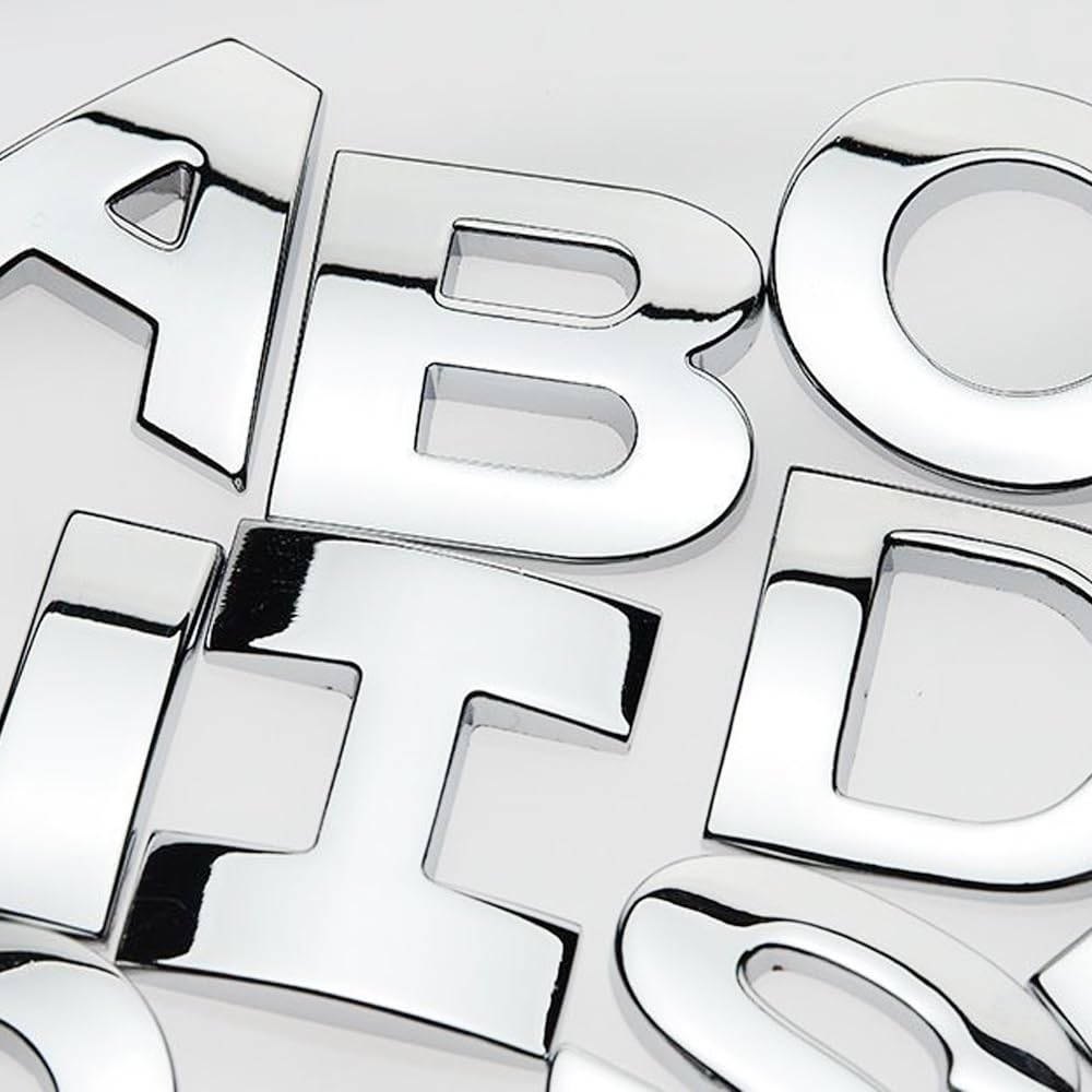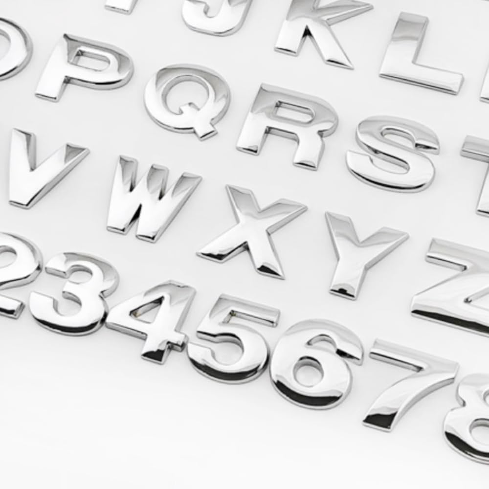 srasakan 車用 立体 エンブレム ステッカー 装飾 ドレスアップ 外装 パーツ アルファベット レター 大文字 数字 ナンバー ステッカー (シルバー, 37個入り)