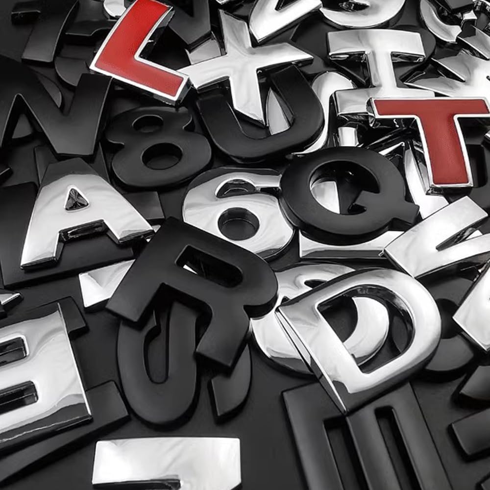srasakan 車用 立体 エンブレム ステッカー 装飾 ドレスアップ 外装 パーツ アルファベット レター 赤色大文字 銀色数字 ナンバー ステッカー (36個入り)