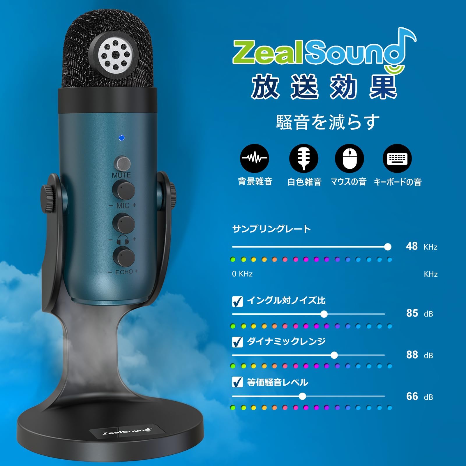 ZealSound USBマイク *Phone用マイク ノイズキャンセリング コンデンサーマイク タッチミュート、エコー、モニタリング、会議用 ゲーム 実況 タブレット RGBライト PC用 録音用 Pad、PC、ポッドキャスト、ストリーミング、Twitch、YouTube、PS4/5、Mac K66PRO