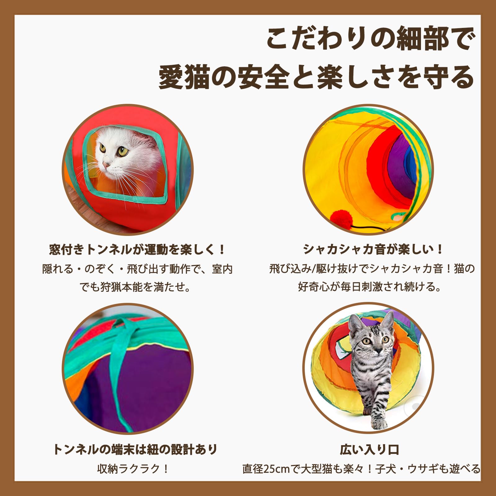 TJT 猫トンネル 長い レインボー トンネル 120cm 可水洗いS形長い2穴付き 折りたたみ式 キャットトンネル 収納便利 猫の遊び場、運動不足解消、ストレス発散 (虹色, S)