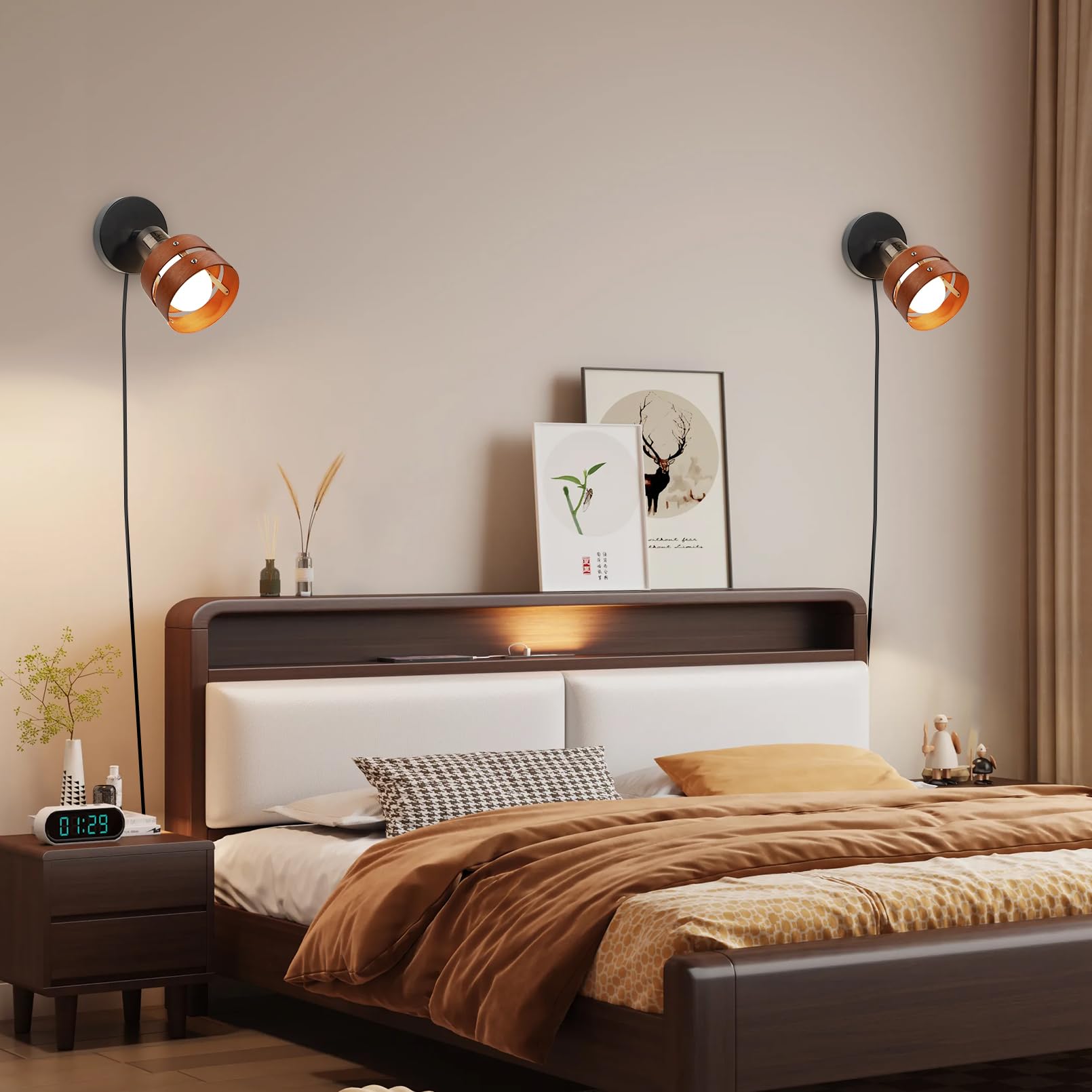 Aiwode ウォールランプ 茶色の木製の円 調光の電球 E26対応 360度回転 壁掛け照明 スイッチ付き リモコン対応 高級 調光調色 目に優しい 節電 省スペース設計 寝室 ベッドサイド デスクライト 読書用 高級レストラン照明 植物育成ライト対応 黒 1個