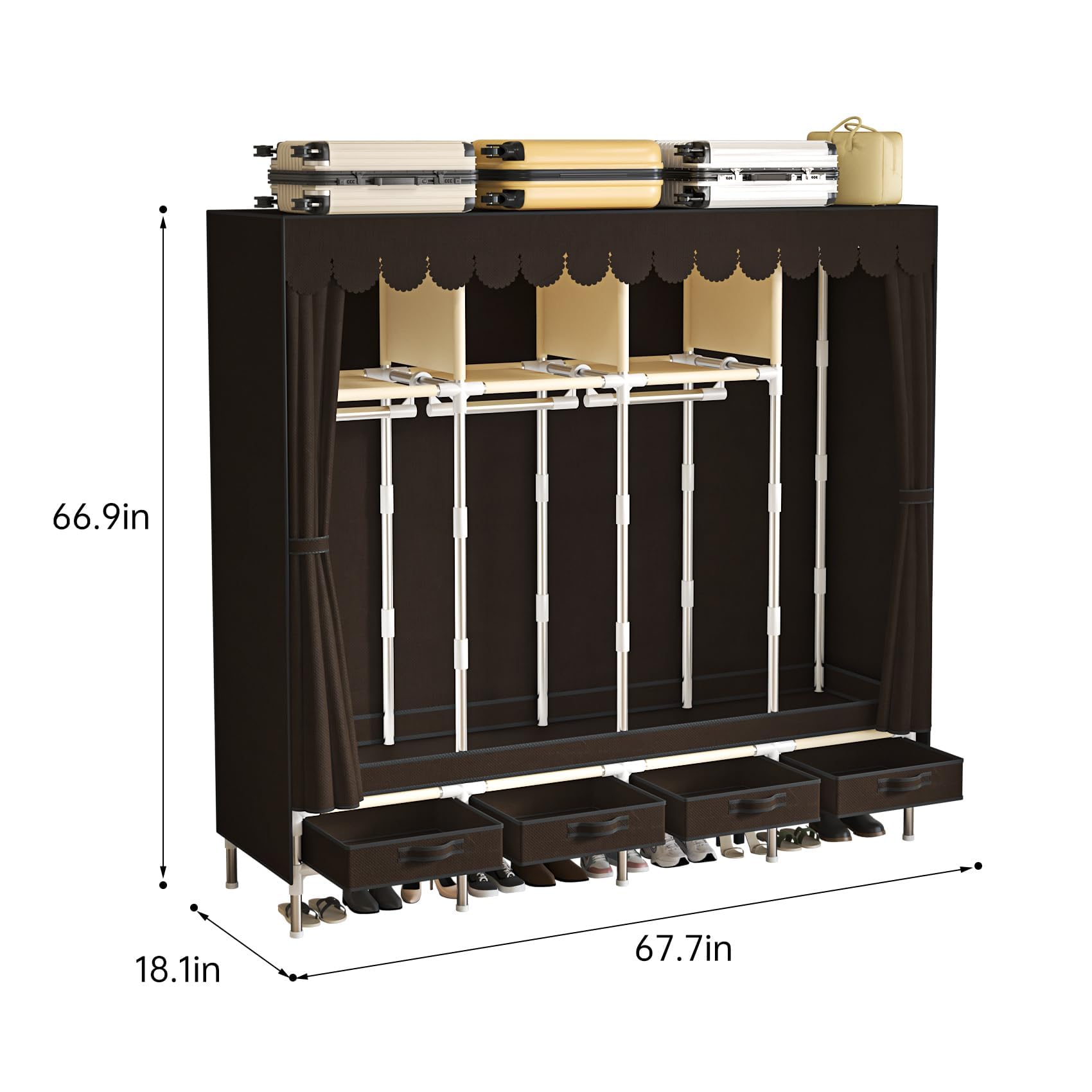 LEAIJIAFY 寝室用戸棚 ワードローブ クローゼット 吊り下げ棒と棚付き 大きなクローゼット収納ラック 衣類を吊るすための収納ラック ポータブルクローゼットワードローブ 不織布カバー付き 引き出し4個 ブラウン