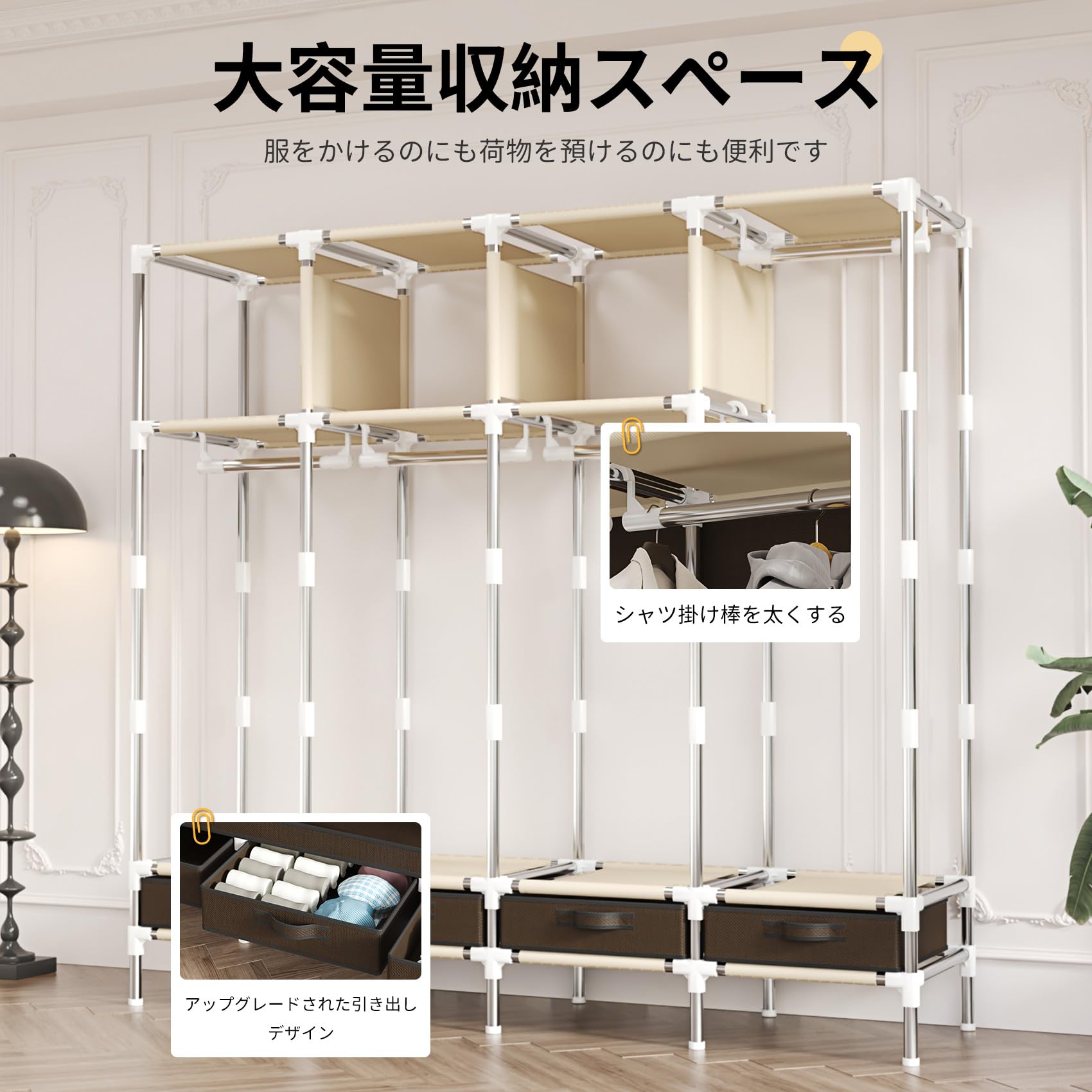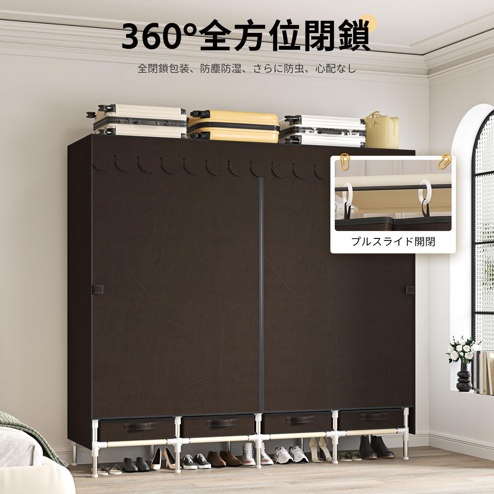 SUKIZUKI ワードローブ クローゼットハンガー カバー付き 収納棚 衣類収納ラック 幅150CM×奥行45CM×高さ170CM シンプル ハンガーラック 整理タンス 洋服掛け 大容量 組み立て式 防水 防塵 防汚
