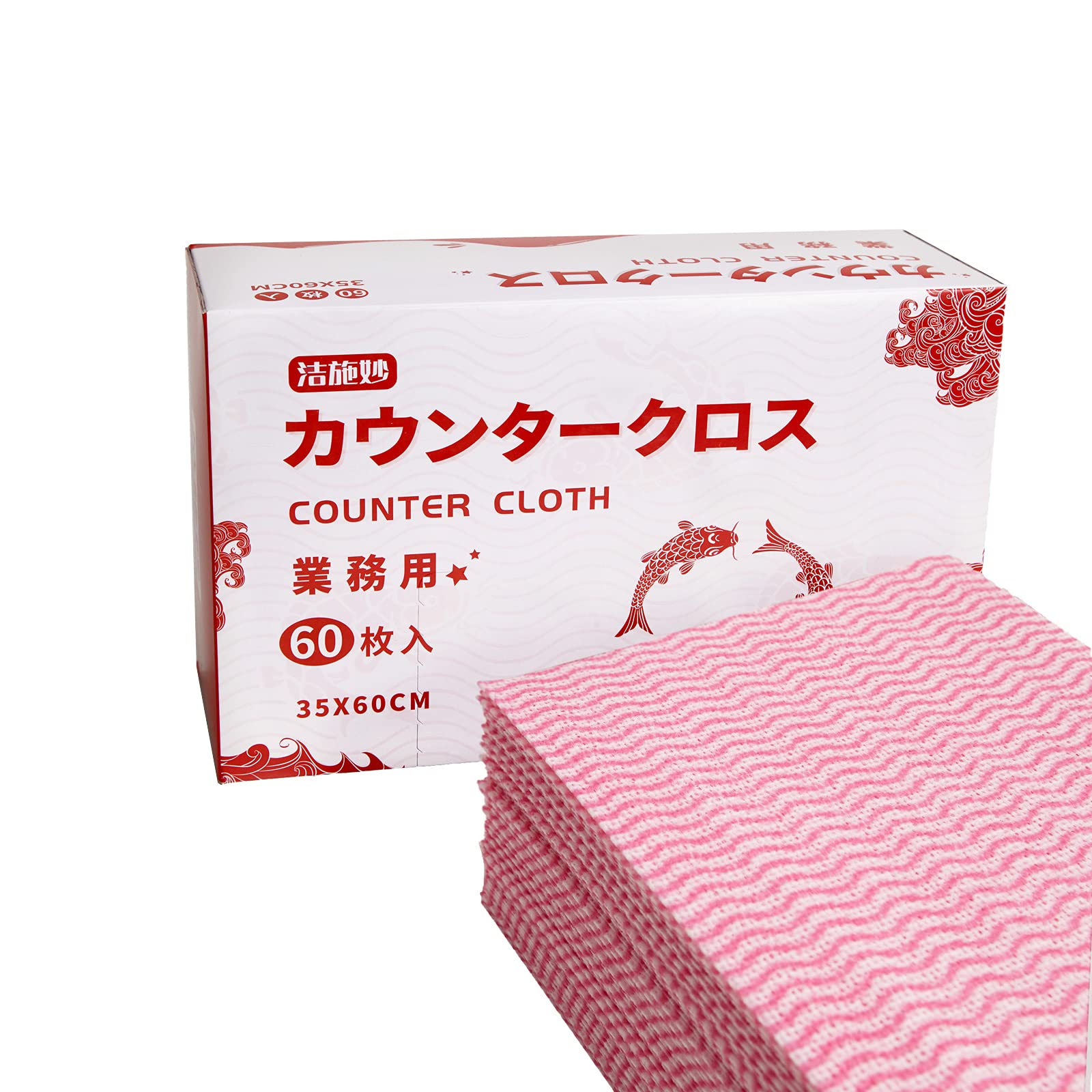 JSM カウンタークロス 35 x 60cm 使い捨てぞうきん ダスター 繰り返し洗って使える不織布 業務用 (35x60cm 60枚入, ピンク)