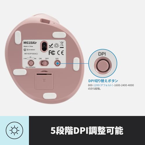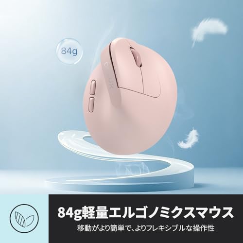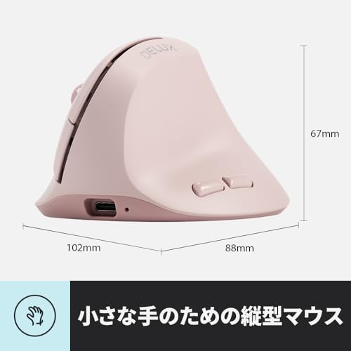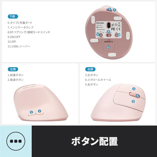 DELUX エルゴノミクスマウス 無線 小手用 84g軽量 縦型マウス 4000DPI 2.4G/Bluetooth 5.2デュアルモード 充電式 手根管、手首、Windows、MacOS、ラップトップ用(M618AIR-ピンク)