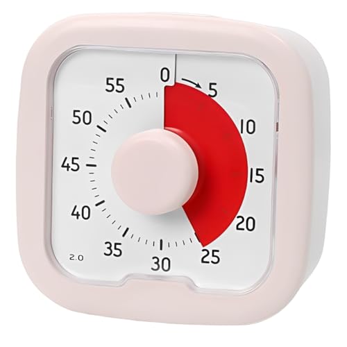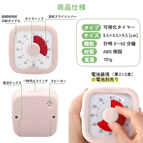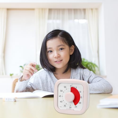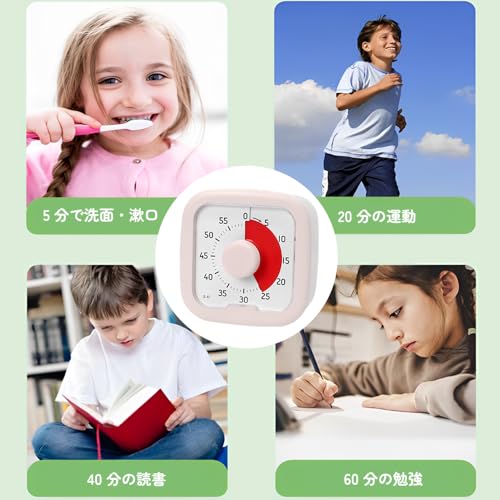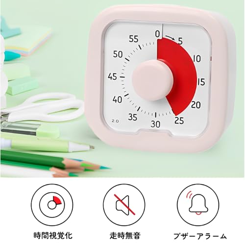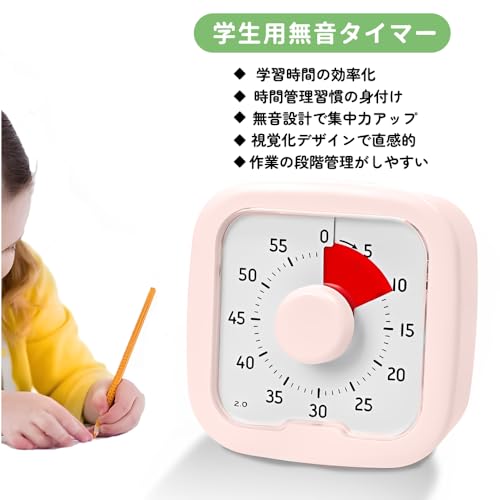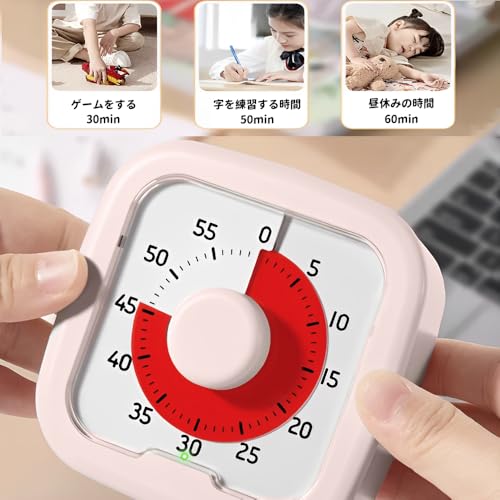 Kamiqiou タイマー 勉強 0~60分間 ポモドーロタイマー 学習 知育時計 じっかんタイマー こども 時っ感 ビジュアル 無音 キッチン オフィス 家庭 学校適用 ホワイト (ピンク)