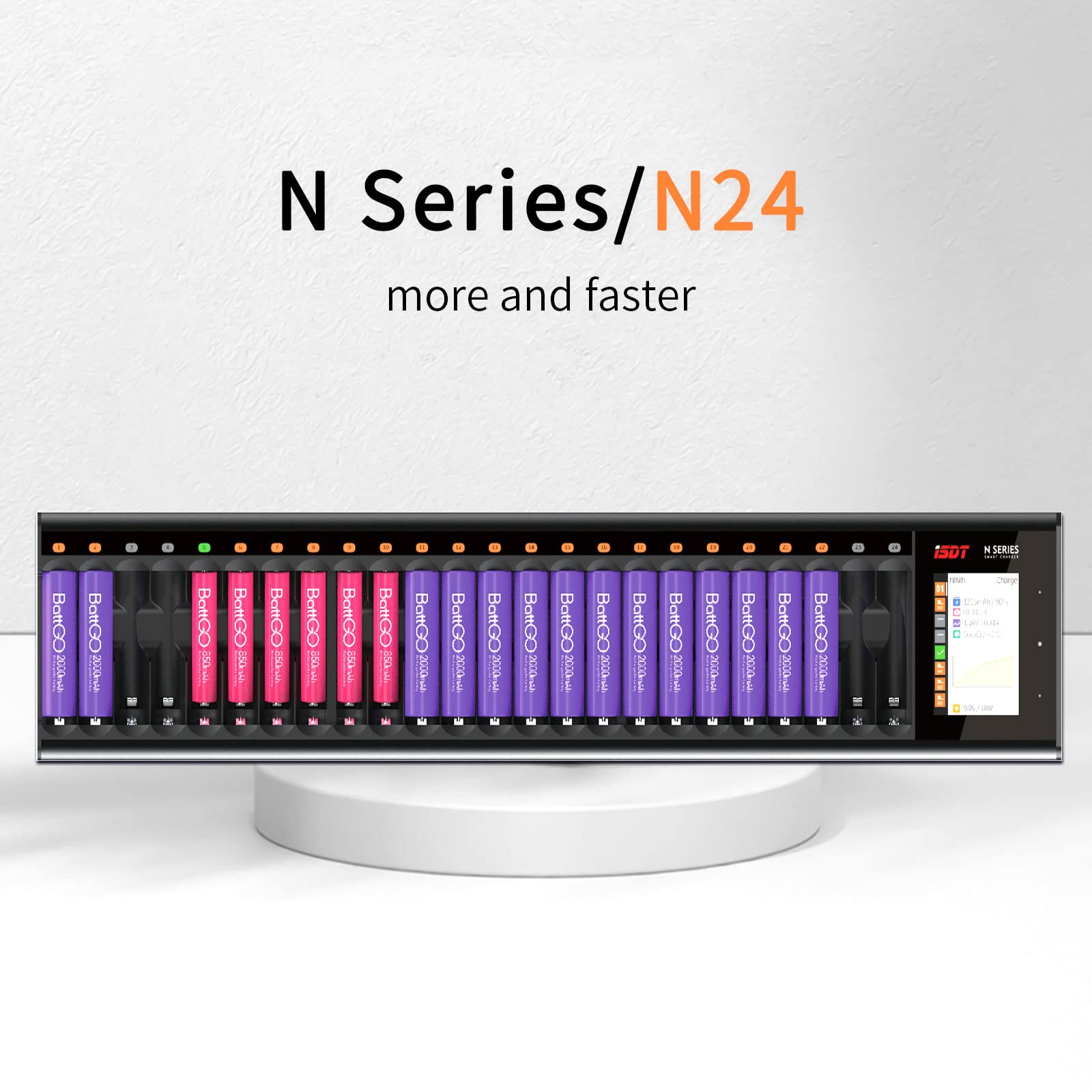 ISDT N24 48W バッテリー充電器、LCD 24 スロットスマート充電器で、AA/AAA 充電式電池に対応 急速充電に対応し、放電保護機能を搭載しています