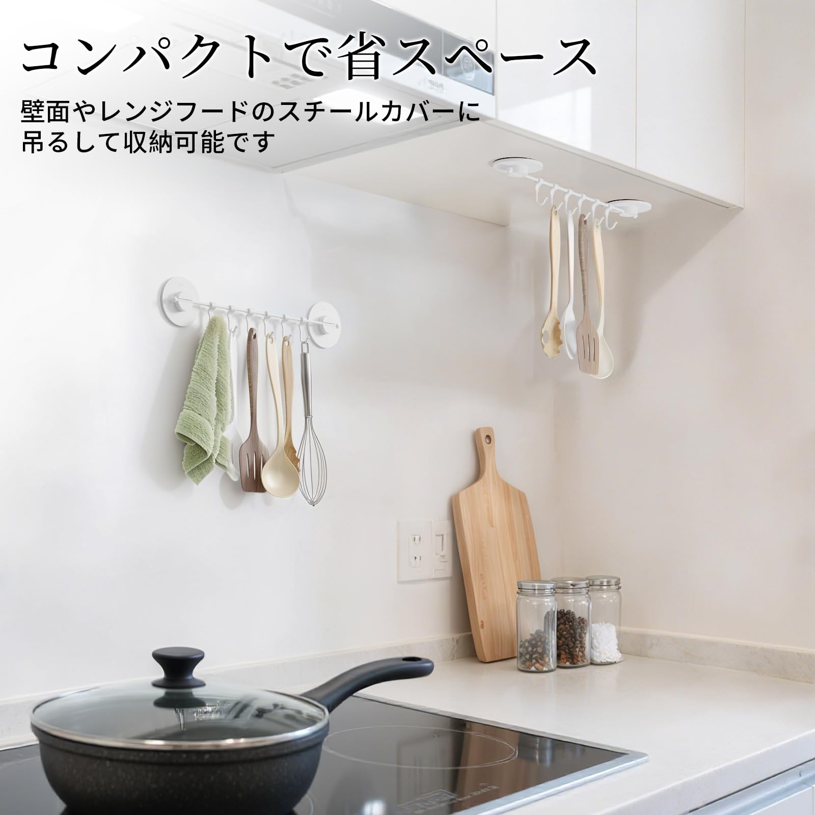 キッチンツールラック 吸盤式 収納 6個フック ホワイト