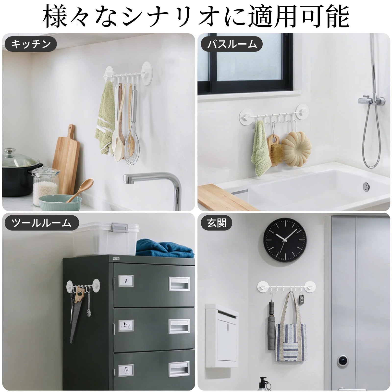 キッチンツールフック 吸盤 フック キッチンラック 台所ラック 360°回転可能 強力接着 キッチン収納 軽量 キッチンツール 収納 バスルーム収納 防水防錆 壁掛け 取り付け簡単 傷つけない 6個フック付き