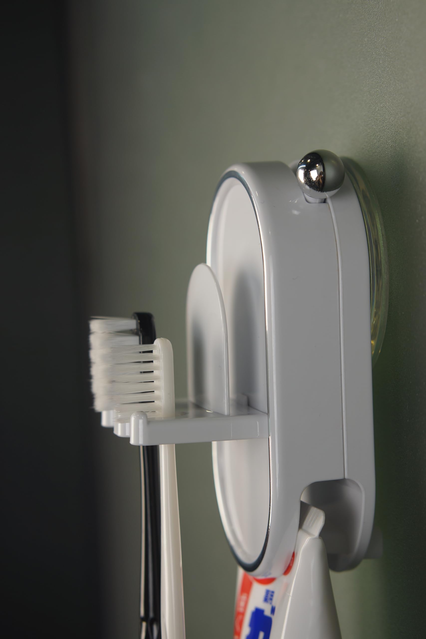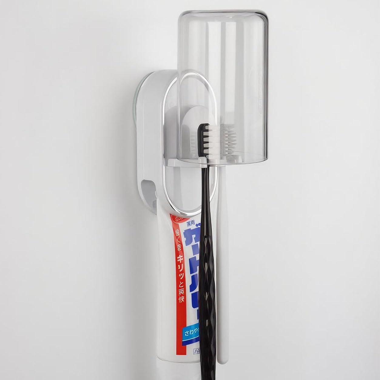 【3in1吸盤】歯ブラシスタンド(2本+歯磨き粉一括収納),防塵防水,粘着+真空【超強力吸着】,落ちにくい,繰り返し使える,穴あけ不要,一人暮らし,家族別々,単身赴任 グッズ,洗面台,浴室,賃貸OK,浮かせて収納,ホワイト